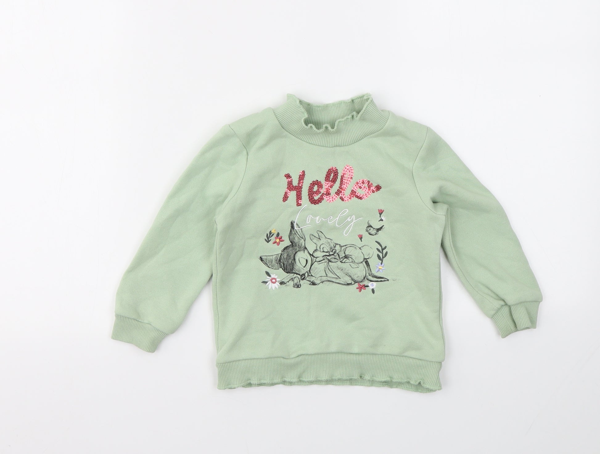 Girls Green Animal Print Pullover Jumper Size 18-24 Months