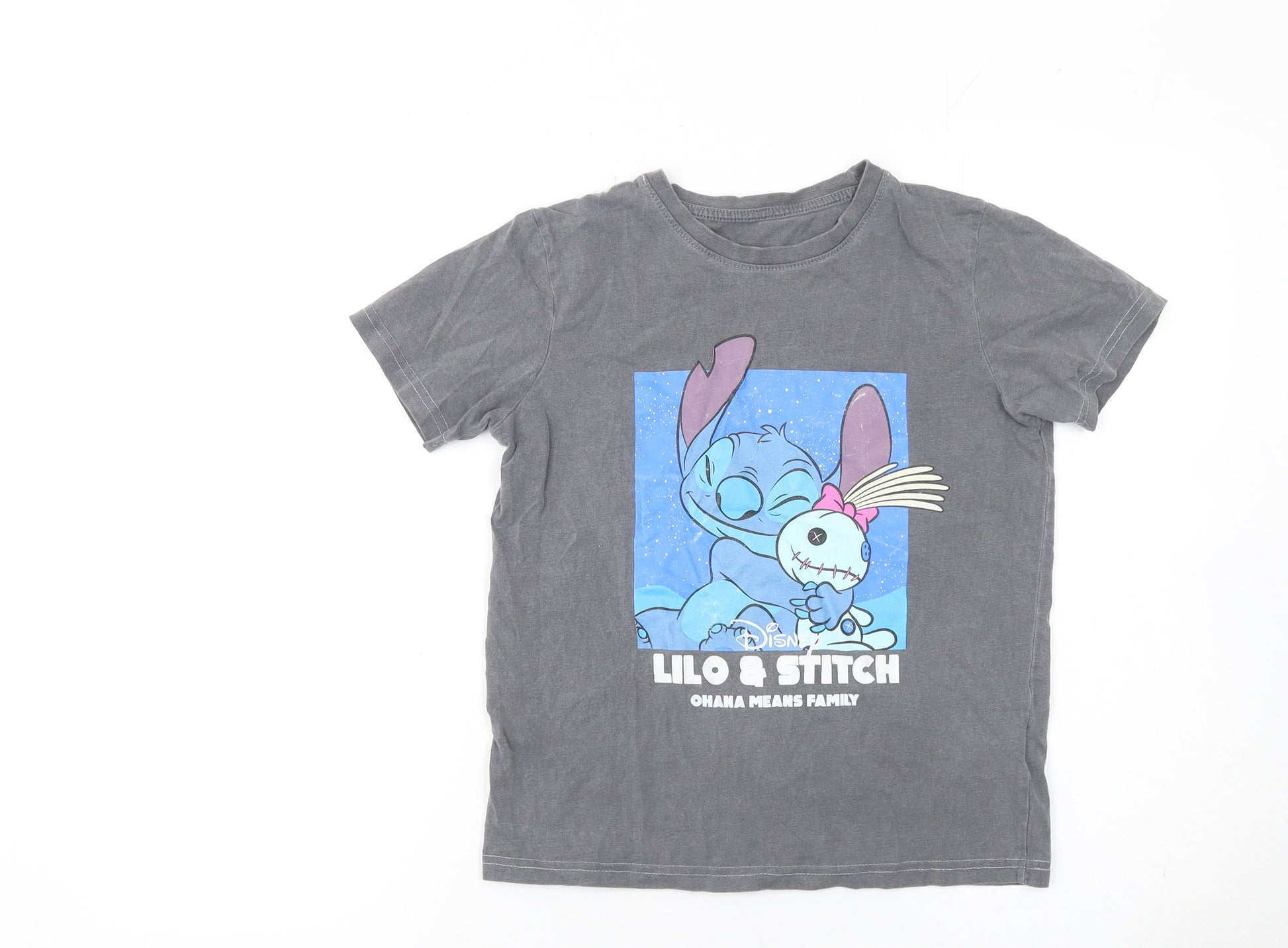 Girls Grey Lilo & Stitch Cotton T-Shirt 9-10 Years Graphic Print