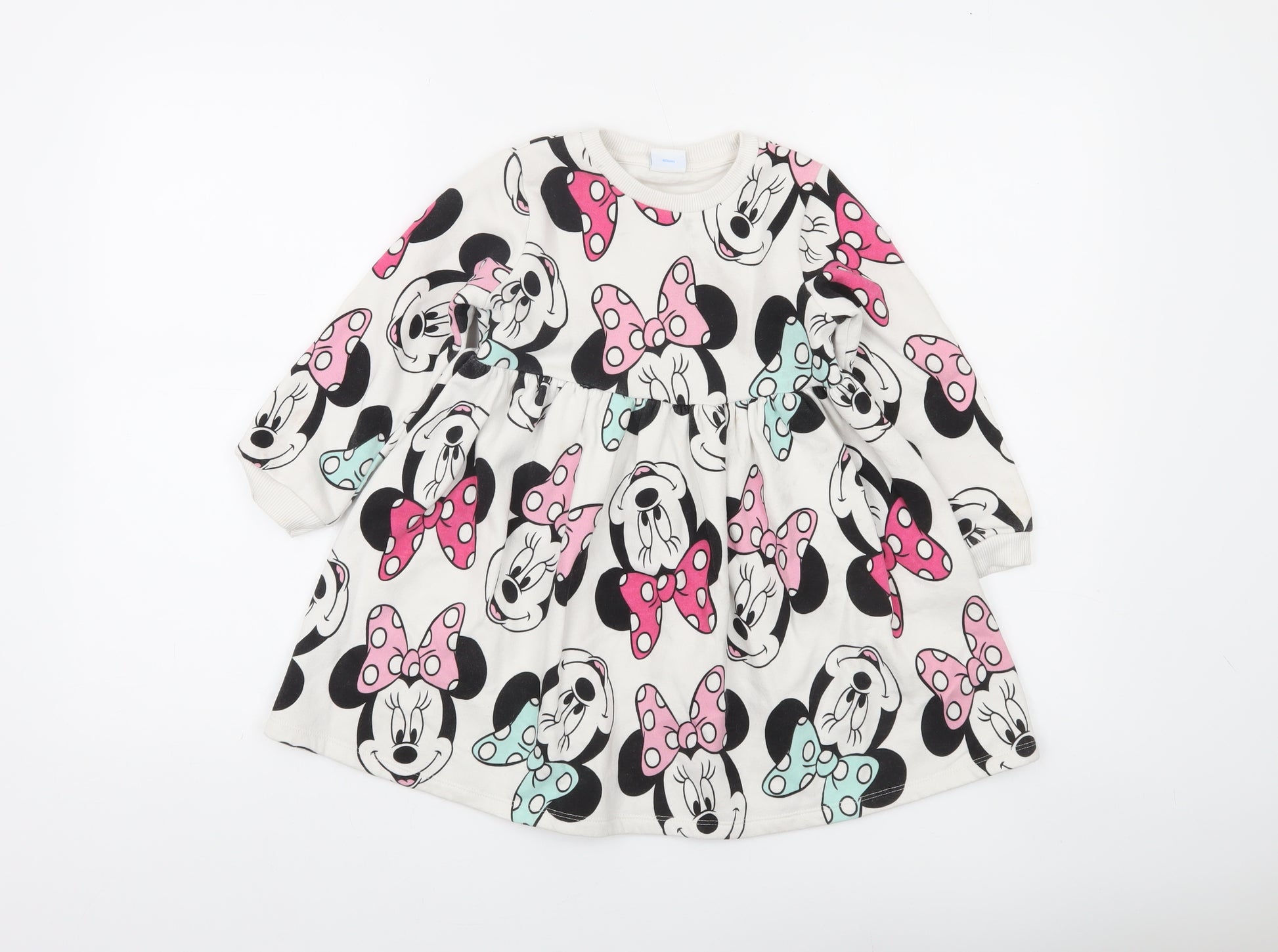 Girls Ivory Minnie Mouse Long Sleeve Skater Dress 5-6 Years