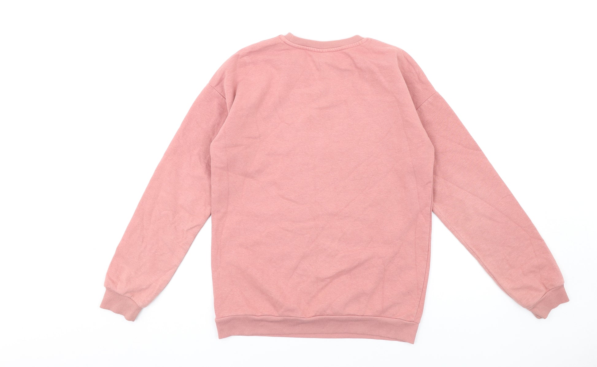 Girls Pink Cotton Pullover Sweatshirt Size 13-14 Years Pullover - Mickey Mouse