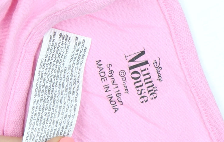 Girls Pink Minnie Mouse T-Shirt 5-6 Years Graphic Print Crew Neck