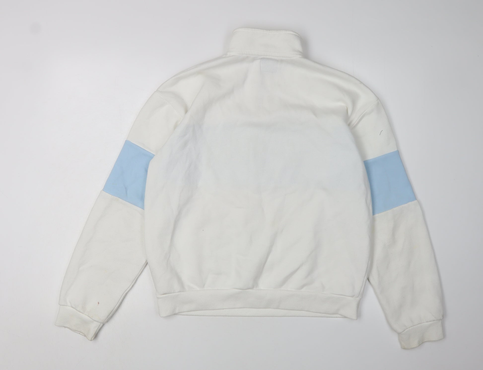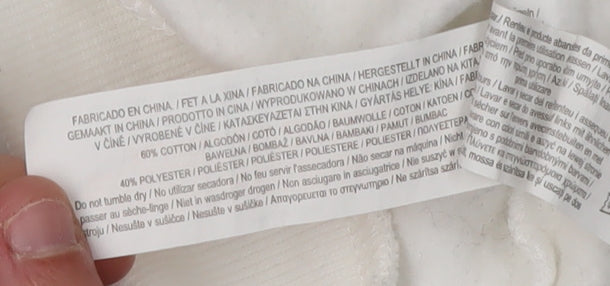 Dive into the playful world of Disney with this charming Girls White Stitch Pullover Sweatshirt, perfect for young fans of the beloved character. This sweatshirt combines comfort and style, featuring a cute graphic print of Stitch that will surely delight any Disney enthusiast. Crafted from a soft blend of 60% cotton and 40% polyester, this jersey fabric promises a cozy fit while being gentle on the skin, making it ideal for everyday wear.The sweatshirt is styled with a high neck and a convenient zip closure, adding an extra layer of warmth and style. Its regular fit and long sleeves ensure a relaxed and comfortable experience, perfect for lounging or an active day out. Machine washable, it’s easy to care for, allowing her to enjoy this piece throughout all seasons.Despite showing some slight discolouration and wear, particularly on the cuffs, this sweatshirt remains in good condition, ready to accompany her on many adventures. With its unique character charm and durable build, it’s a must-have addition to any young girl’s wardrobe. Whether for casual outings or cozy days in, this sweatshirt combines functionality with a bit of Disney magic.Grab this pullover sweatshirt for a blend of whimsical character and everyday practicality, a delightful choice for the young trendsetter in your life.