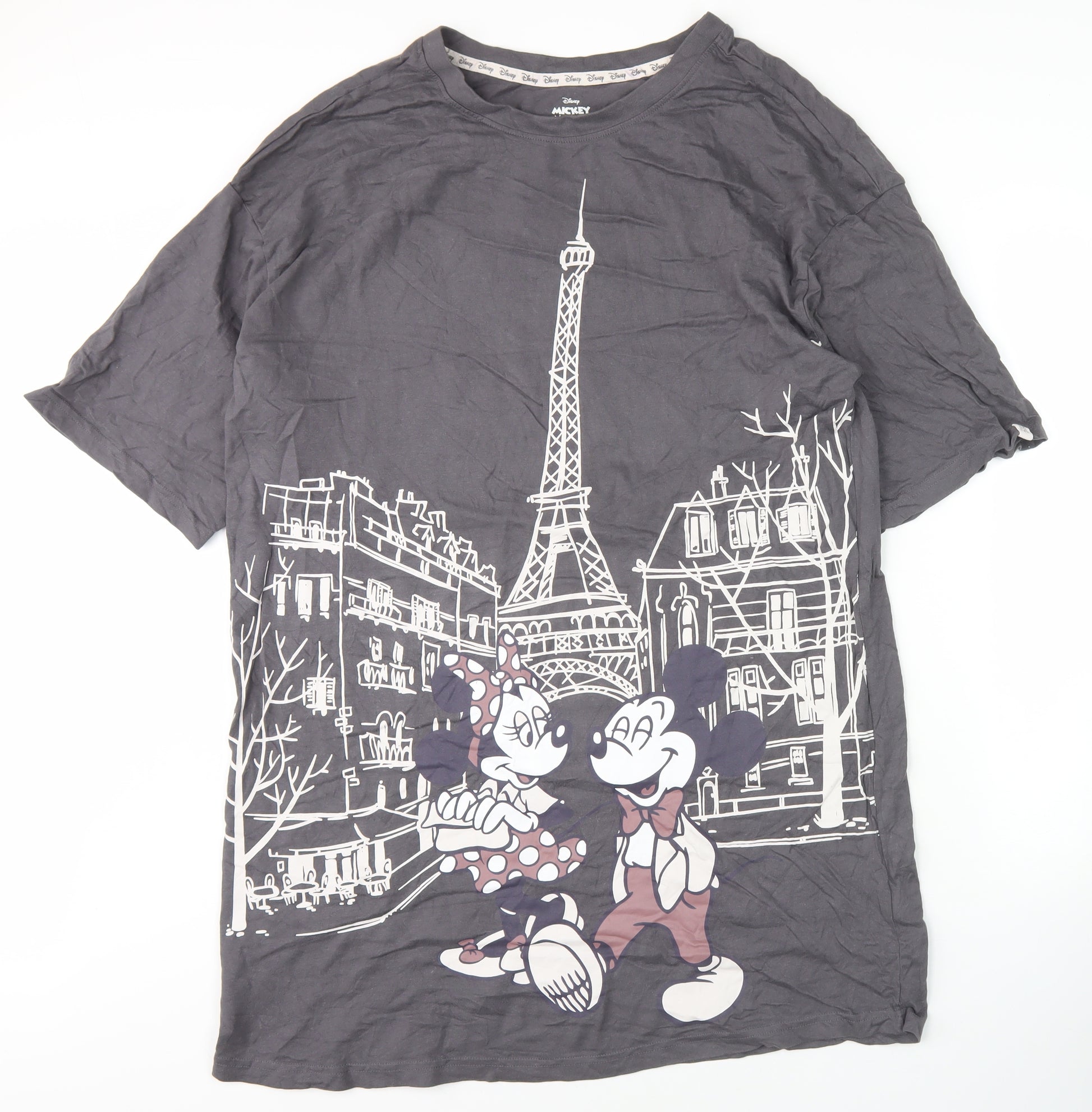 Step into the world of Disney magic with this delightful Mickey Mouse-inspired nightshirt. Made from 100% cotton, this comfortable and stylish jersey T-shirt is designed to provide maximum comfort for peaceful nights. The grey fabric is adorned with a charming graphic print featuring the iconic Mickey & Minnie in a Parisian setting, perfect for Disney fans and adding a whimsical touch to your nightwear collection. Suitable for women, this regular size nightshirt features a classic crew neck and short sleeves, ideal for all seasons. Manufactured by Disney and available from Primark, it combines quality with affordability. With its fun theme and Disney character family appeal, it’s bound to become your new nightwear favourite. A perfect gift for yourself or another Disney lover, offering both comfort and enchanting charm. Maintain its quality easily with machine wash care, ensuring it remains a staple in your sleepwear wardrobe. Despite being pre-loved, it's in excellent condition with minimal signs of wear. Grab this quirky and delightful piece at a great value price now!