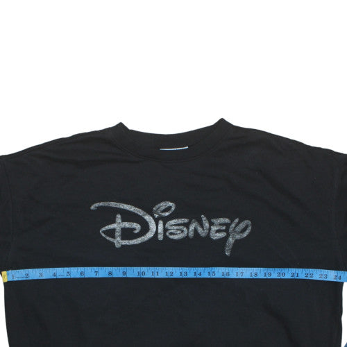 Disney Women Black Glitter Logo Pullover Sweatshirt Size L 14/16