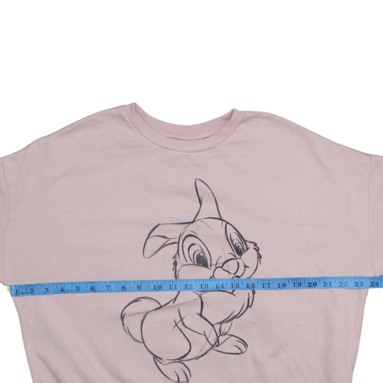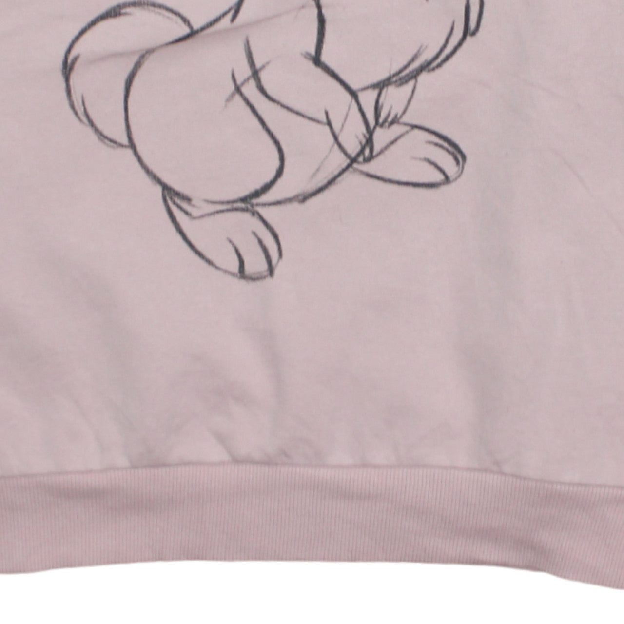 Step into cosy charm with this delightful Disney women’s sweatshirt featuring Thumper, the lovable rabbit from Bambi. Crafted in a soft pastel pink tone, this pullover brings warmth and style to your casual wardrobe. The relaxed fit ensures comfort all day long, making it ideal for layering or wearing alone for a laid-back look. Made from high-quality cotton blend fabric, this sweatshirt is both breathable and comfortable, perfect for everyday wear in autumn or spring. The front showcases a large sketch-style graphic of Thumper, adding an adorable and nostalgic Disney touch that fans will love. Finished with ribbed cuffs, neckline, and hem, the sweatshirt offers a secure yet flexible fit. Whether you’re running errands, relaxing at home, or meeting friends for coffee, this sweatshirt combines practicality with magical style. Pair it effortlessly with jeans, leggings, or casual joggers to complete the look. A must-have piece for any Disney enthusiast who values comfort, quality, and timeless character designs. Lightly used and in excellent condition, this sweatshirt retains its shape and colour beautifully, offering years of wear ahead. Perfect for those who appreciate vintage-inspired Disney apparel and want to add a soft, feminine touch to their outfit rotation, this piece ensures both versatility and charm. Treat yourself or gift a Disney fan today – this Thumper sweatshirt will bring a smile with every wear.