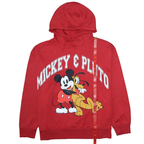 Disney Women Red Mickey & Pluto Hooded Pullover Sweatshirt XL