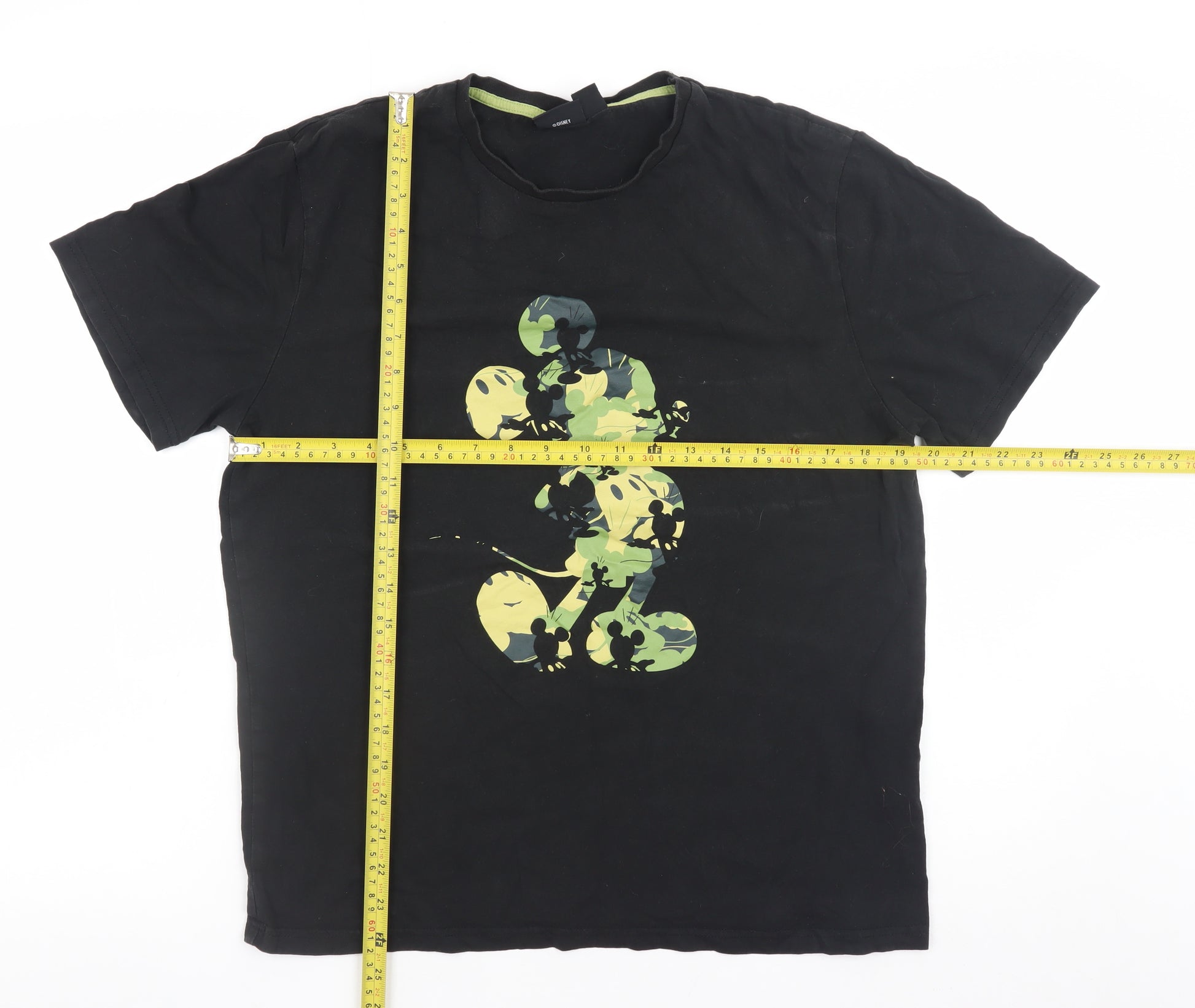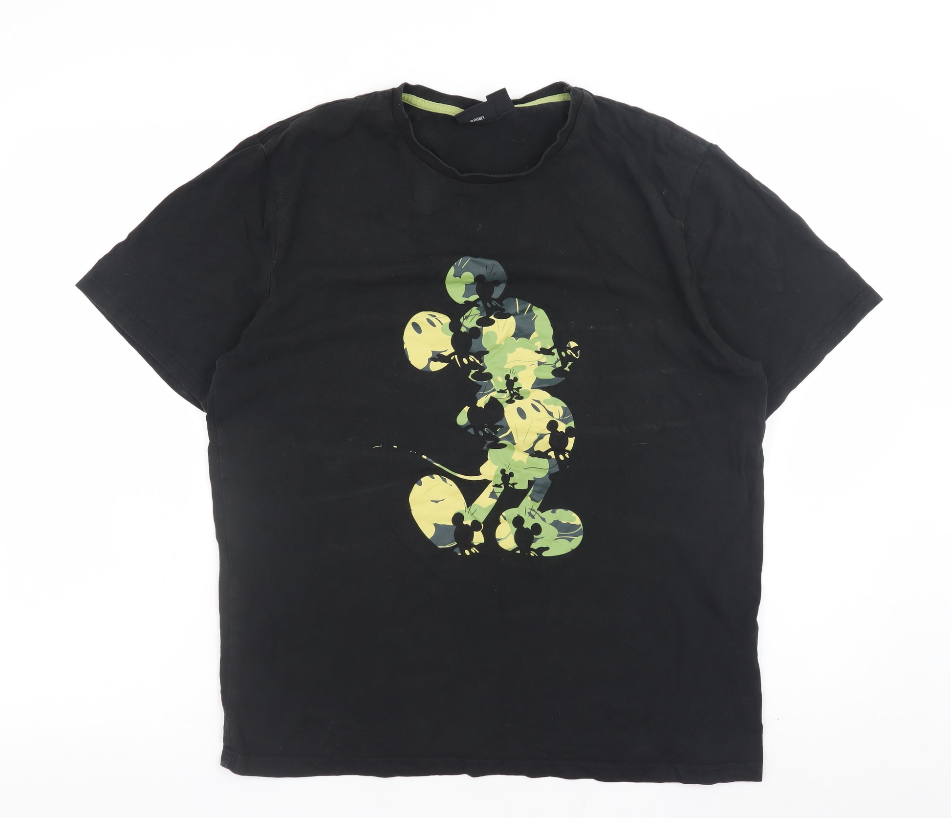 Show off your playful side with this officially licensed Disney women’s T-shirt. Designed in a classic black shade, this stylish short-sleeve tee features a large graphic of the beloved Mickey Mouse in a camouflage-style print on the front, offering a fun yet fashionable take on casual wear. Made from 100% cotton, it feels soft and breathable against the skin, ensuring all-day comfort whether you’re relaxing at home, heading out for errands, or pairing it with jeans for a casual outing. The lightweight jersey fabric gives it a comfortable fit that drapes nicely without feeling too tight, while the crew neckline and fitted sleeves maintain a flattering, classic silhouette that never goes out of style.This T-shirt is an ideal choice for those who love timeless characters with a cheeky twist, combining nostalgic charm with a modern edge. The black hue makes it versatile and easy to style with a variety of outfits, from denim shorts and trainers to a layered streetwear look. Suitable for everyday wear through spring, summer, and even autumn paired with a jacket, it serves as a wardrobe staple for any Disney enthusiast. The breathable cotton fabric also ensures durability and easy care, making it perfect for frequent use.In very good pre-owned condition, this T-shirt shows only minimal signs of gentle wear with the printed design remaining vibrant and firmly attached. It’s the perfect casual top for anyone looking to add a touch of character and comfort to their collection. Whether you’re buying it for yourself or as a gift for a fellow Disney lover, this top delivers both style and nostalgia in one easy-to-wear piece. At an affordable price, it’s a delightful balance of quality, comfort, and charm that will quickly become a go-to favourite in your wardrobe.