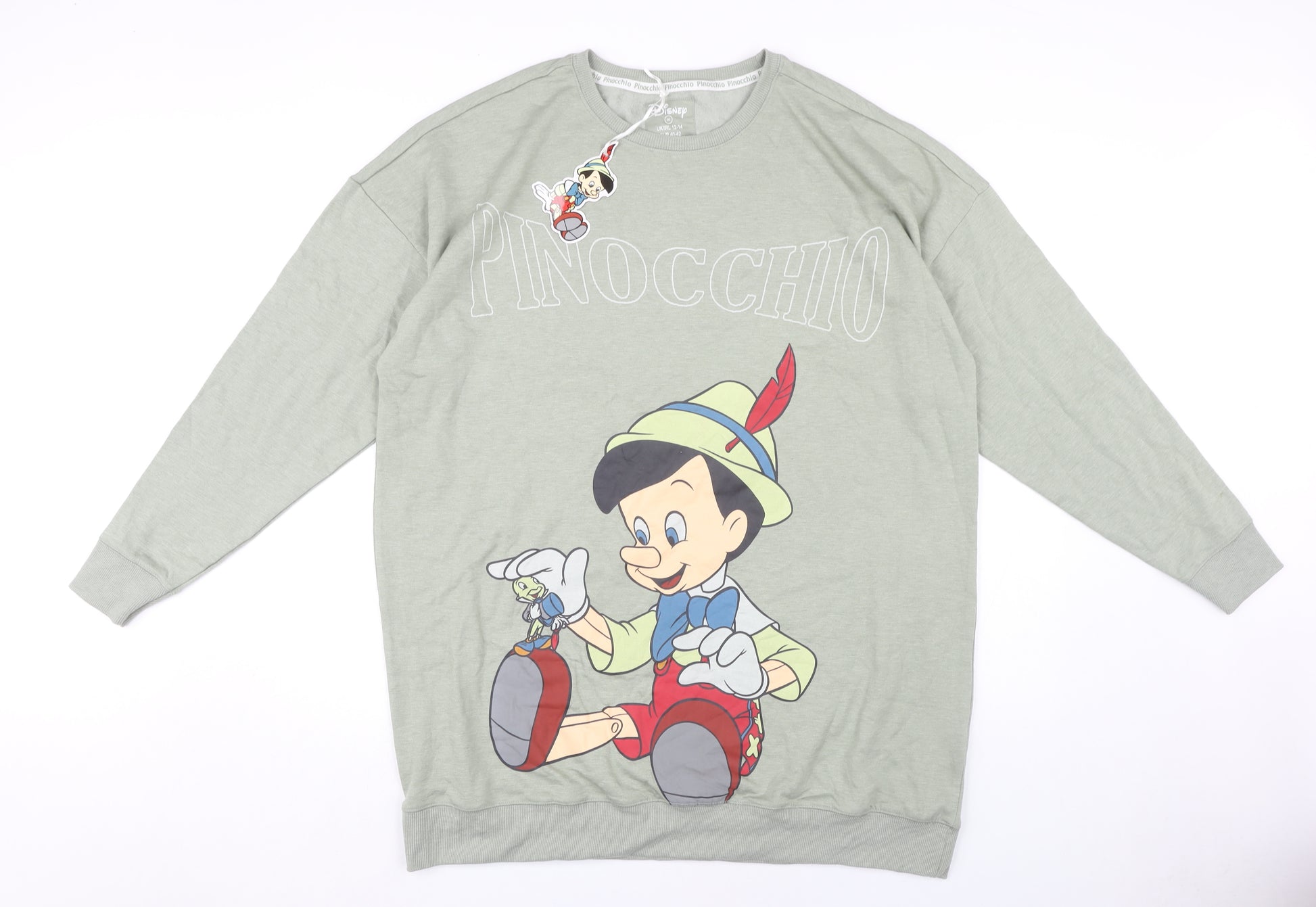 Step into a whimsical world with this Disney Women’s Green Pinocchio Sweatshirt, designed for casual comfort and nostalgic style. Tailored for women, this medium-sized pullover features a delightful Pinocchio graphic, bringing a touch of Disney magic to your wardrobe. Crafted from a soft blend of polyester, viscose, and elastane, it promises comfort for all seasons. The crew neck and long sleeves offer a versatile fit, ensuring ease of wear. Whether you’re lounging at home or out for a casual stroll, this sweatshirt is your go-to for a relaxed, yet stylish look. Perfect for fans of classic cartoons, this piece embodies the timeless charm of Disney's storytelling, making it a must-have addition for any collection. Machine washable and durable, it’s designed for easy care, aligning functionality with fashion. Embrace the playful spirit of Pinocchio and let your personality shine with this unique, graphic print sweatshirt.