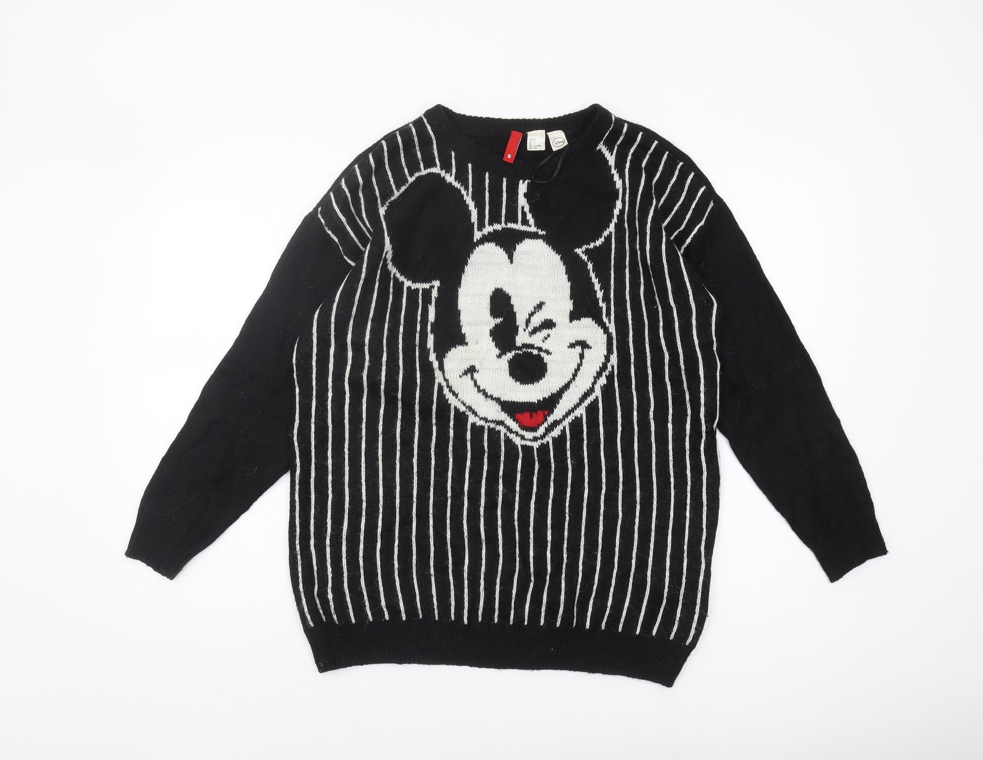 Dive into the enchanting world of Disney with this stylish black pullover jumper featuring the iconic Mickey Mouse graphic. Crafted for women, this casual piece comes in a standard size of S, promising a regular fit that's both comfortable and trendy. Made from a unique blend of 77% acrylic, 18% polyamide, and 5% alpaca, the jumper offers warmth and durability that's perfect for the autumn and winter seasons. The crew neck design complements its long sleeves, making it an ideal addition to your seasonal wardrobe. Embrace the fun cartoon and Disney themes with this character-centric piece from the Mickey & Friends family. It's perfect for casual occasions and sure to be a hit among Disney lovers. In excellent condition with no visible flaws, this jumper is priced competitively to ensure you get a great deal. Elevate your casual ensemble with this delightful Disney pullover, and let Mickey bring a touch of magic to your everyday style.