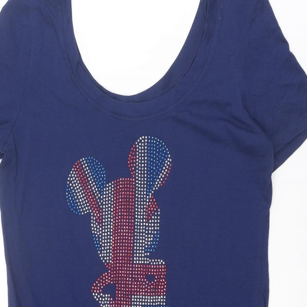 Womens Blue Cotton Basic T-Shirt Size 14 Scoop Neck - Mickey Mouse