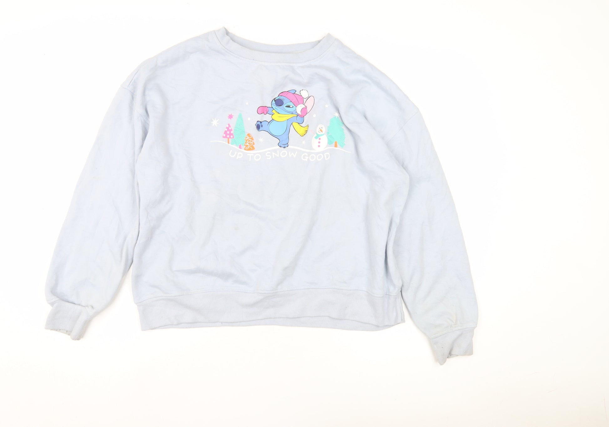 Stay warm and stylish in this delightful Disney Women's Sweatshirt featuring Stitch from the beloved movie Lilo & Stitch. Crafted with a blend of cotton and polyester, this pullover is designed for comfort and durability. Its bright blue colour with playful winter-themed graphics makes it a cheerful addition to any casual wardrobe. Ideal for chilly days, the sweatshirt features a crew neck and long sleeves, ensuring coverage and warmth during the winter season. The regular fit is perfect for relaxed outings or cosy days at home. Whether you're a fan of Disney or looking to add a touch of fun to your wardrobe, this graphic print sweatshirt combines comfort and charm effortlessly. Machine washable for easy care, it's set to become a favourite go-to piece for casual occasions.