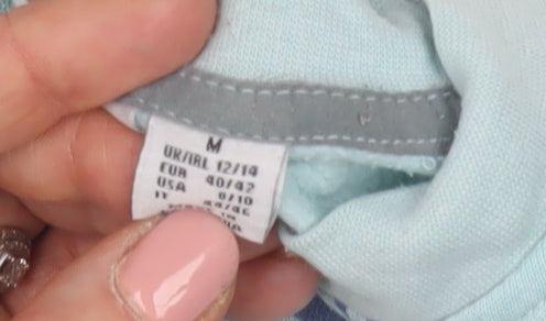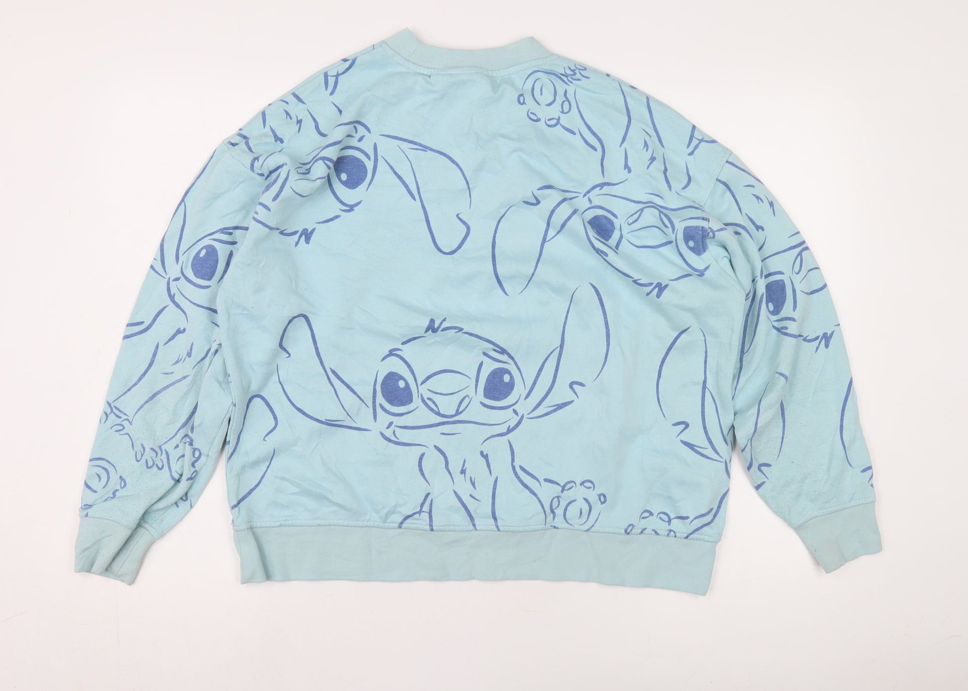 Step into a world of fun and nostalgia with this Disney Women's Blue Stitch Sweatshirt. Crafted for comfort with soft fleece, it’s perfect for those seeking warmth without sacrificing style. Bearing a charming all-over Stitch print, this sweatshirt hits just the right note of playful chic for the Disney fan. Designed for women, the medium size ensures a regular fit, ideal for relaxed, everyday wear.The crew neckline and long sleeves make it suitable for various casual occasions, blending seamlessly with your autumn and winter wardrobe. The pullover style adds to its ease of wear, eliminating the hassle of closures. Featuring a vibrant blue hue complemented by distinctive Stitch illustrations, it captures attention and showcases your love for classic cartoon characters.This piece is machine washable for convenient garment care, ensuring you can wear it repeatedly without worry. Although pre-loved, it's kept in excellent condition, showing minor signs of wear that add character without compromising quality.Whether lounging at home, running errands, or catching up with friends, this versatile sweatshirt complements your laid-back fashion effortlessly. Celebrate your inner Disney fan and stay stylishly snug all season.