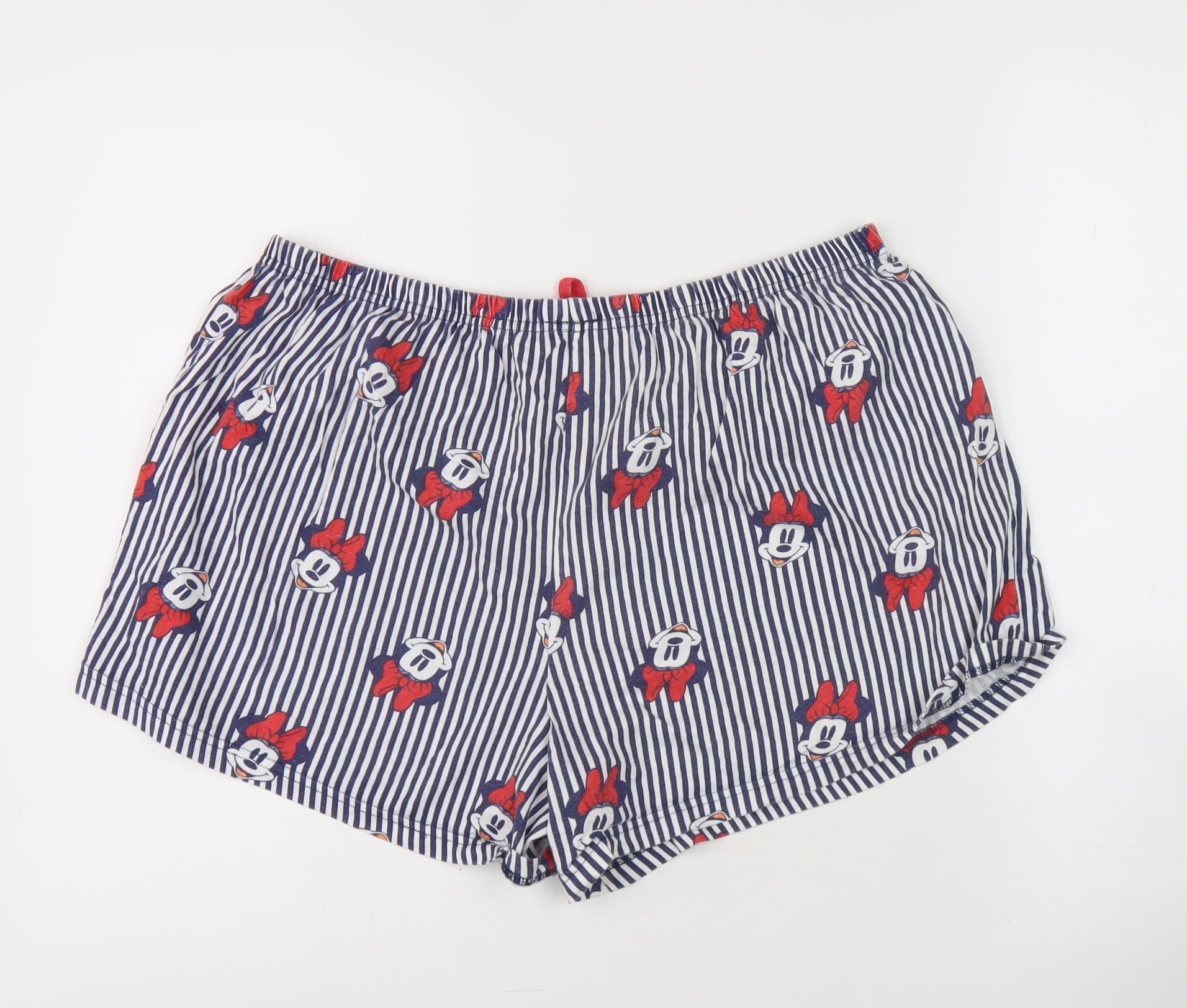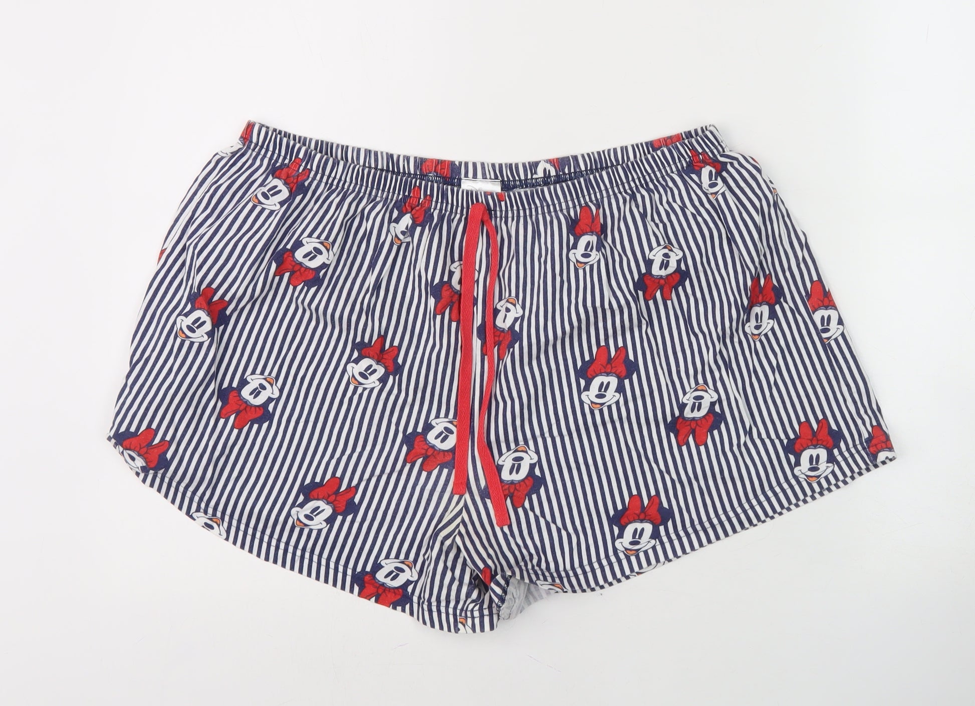 Add a playful touch to your nightwear collection with these Minnie Mouse themed sleep shorts from Disney. Perfect for fans of classic cartoons, these shorts are made from 100% cotton, ensuring a comfortable and breathable feel ideal for warm summer nights. The shorts feature an eye-catching striped pattern adorned with adorable Minnie Mouse prints, adding a fun flair to your loungewear. The drawstring closure offers an adjustable fit, making them as practical as they are stylish. Designed for women, these lightweight shorts are machine washable, ensuring easy care and maintenance. In excellent condition, these shorts show no signs of damage or stains. Whether you're a Disney enthusiast or just love a touch of whimsy in your sleepwear, these shorts are a charming addition to any collection. Available in a size 16-18, and priced affordably, these delightful shorts are perfect for adding a bit of fun to your bedtime routine.