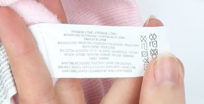 This delightful Disney women's sweatshirt is a perfect blend of comfort, casual style and fun, making it an ideal choice for everyday wear or relaxed outings. Designed in a soft light pink shade and crafted from a breathable jersey fabric, the pullover sweatshirt is lightweight yet cosy, suitable for layering throughout spring, autumn, and winter seasons. It features long sleeves and a classic crew neckline for timeless appeal, while ribbing at the cuffs and hem ensures a snug and comfortable fit.Made with a durable blend of 65% polyester and 35% cotton, this sweatshirt combines the easy-care qualities of polyester with the softness of cotton. It has a machine washable finish, making it practical for daily wear. As an authentic Disney piece, the sweatshirt comes adorned with a bold and colourful Mickey Mouse themed graphic print across the chest. This eye-catching design adds a playful personality and demonstrates its tie to the much-loved Disney cartoon and character family.The pullover style offers ease and simplicity with no fuss closures, while its lightweight fit and breathable nature make it adaptable for different occasions, whether you are out for a walk, lounging at home, or enjoying a casual day out. Sized as a UK women’s Small (UK 10–12), the sweatshirt provides a regular fit, while the 50 cm chest measurement ensures a flattering silhouette without being restrictive. This sweatshirt is in excellent pre-loved condition, showing minimal signs of wear with no visible flaws, ensuring its continued wearability. Its playful Disney graphic makes it a stand-out must-have item for fans and fashion-conscious individuals alike. Whether purchased for yourself or as a thoughtful gift for someone who loves Disney’s magic, this sweatshirt is a perfect mix of comfort, nostalgia, and style at an affordable price.Bring home a touch of Disney charm with this versatile sweatshirt – easy to style with jeans, joggers, or layered over dresses for that casual chic look.