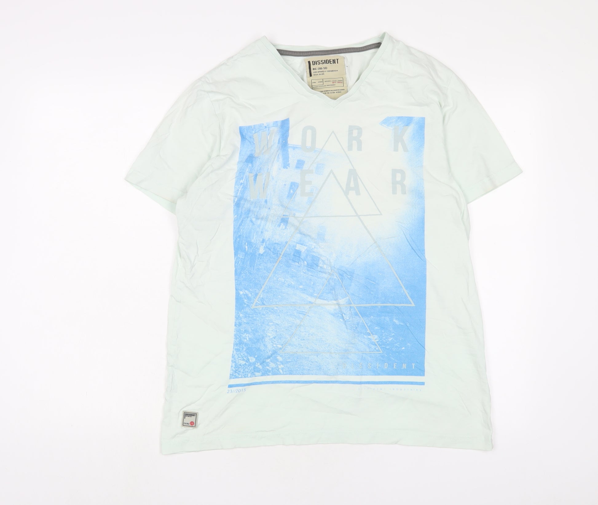 Womens Green Cotton Basic T-Shirt Size L V-Neck
