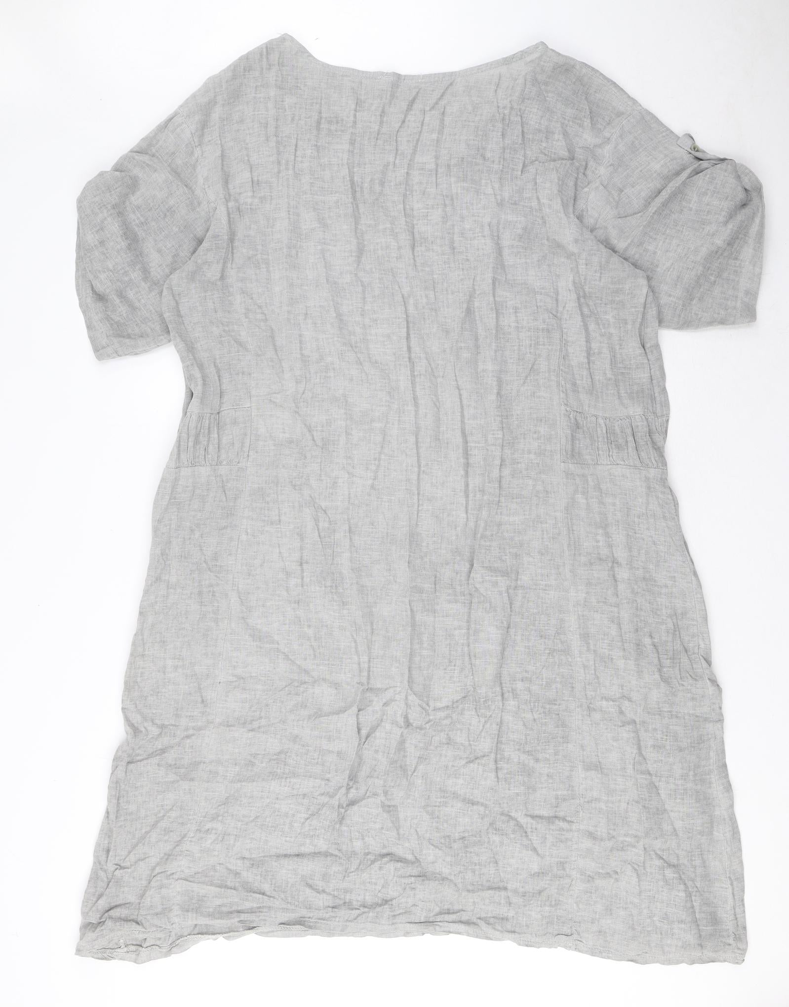 Womens Grey Linen Shift Size 16 Round Neck Pullover
