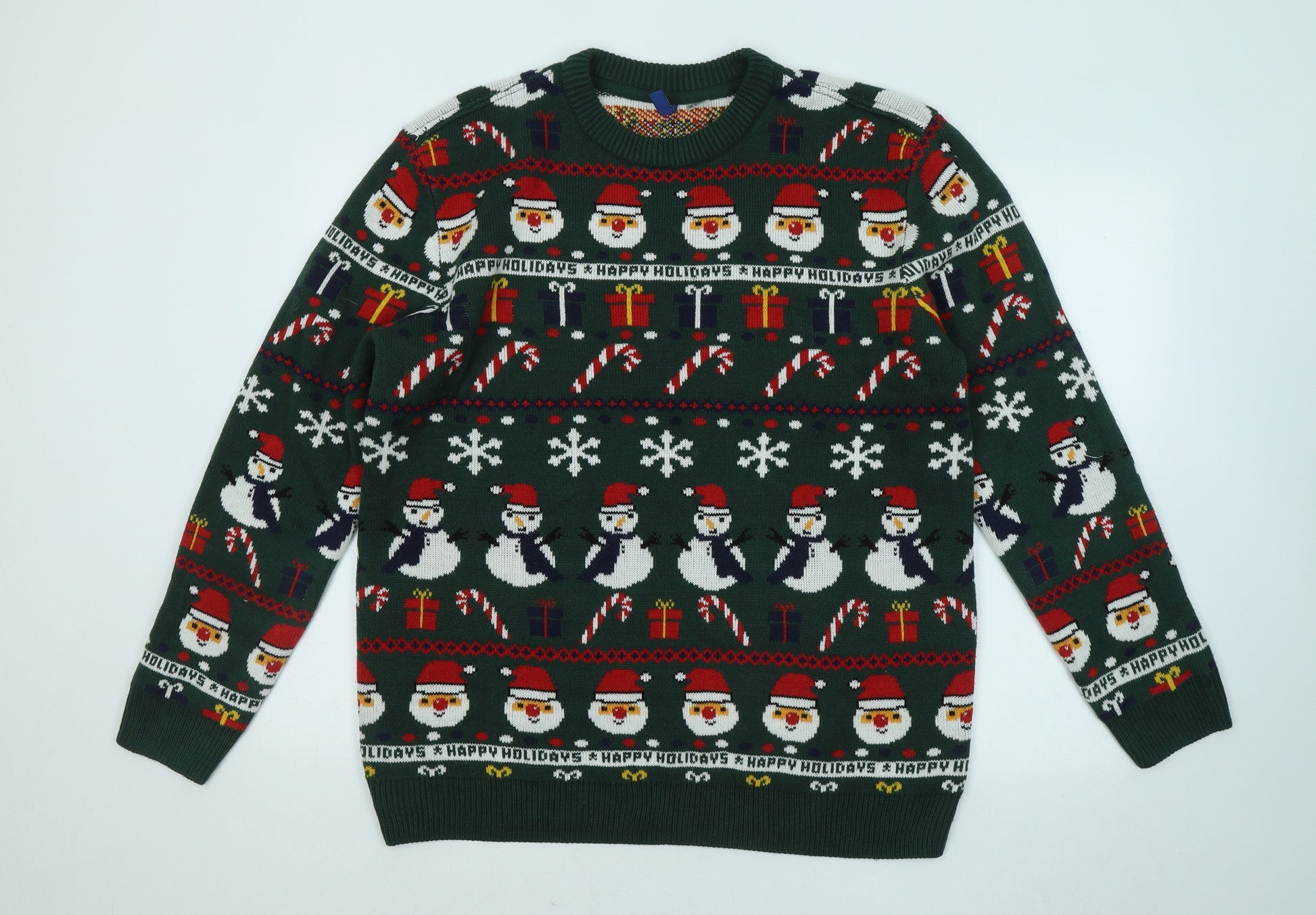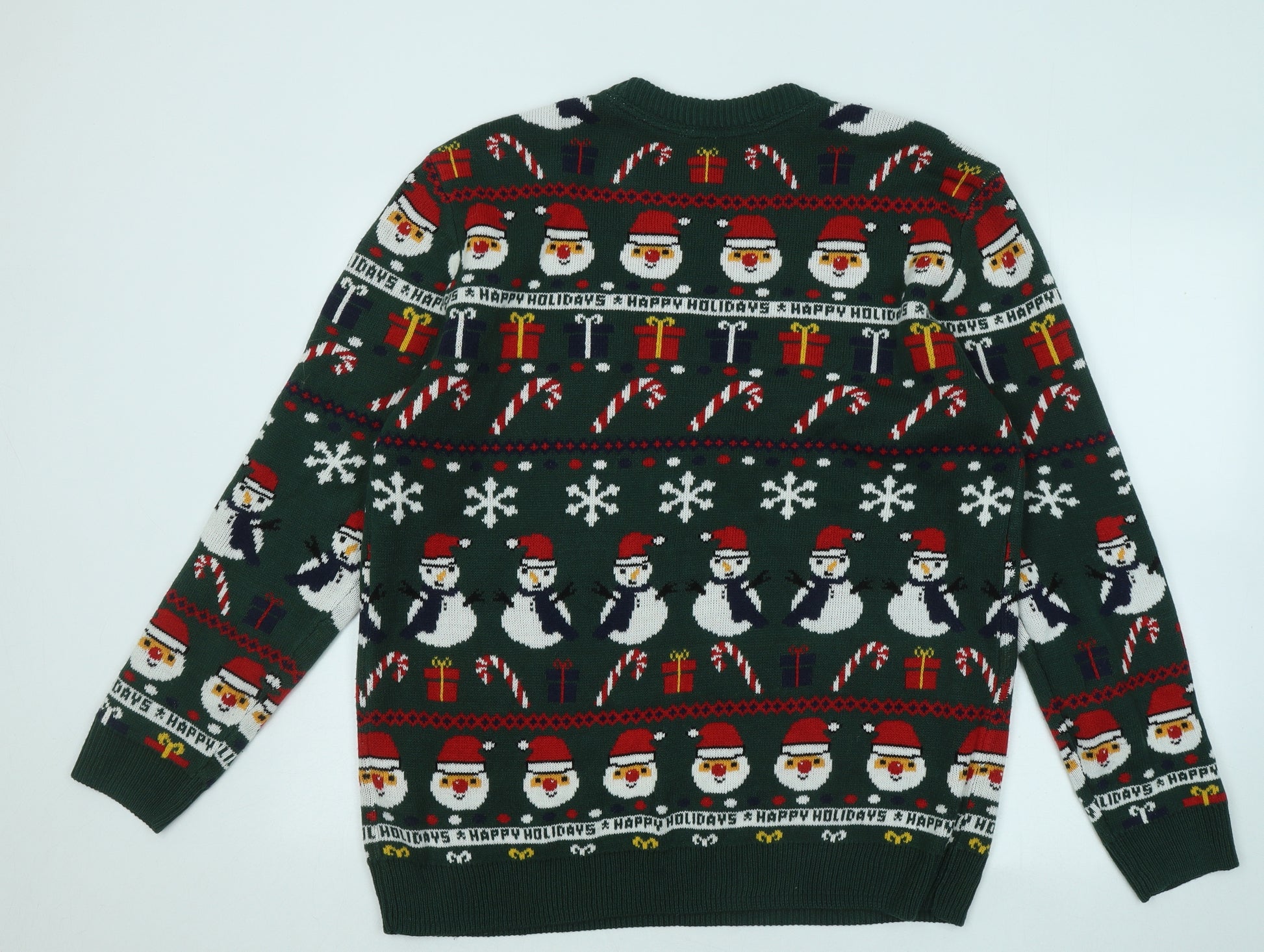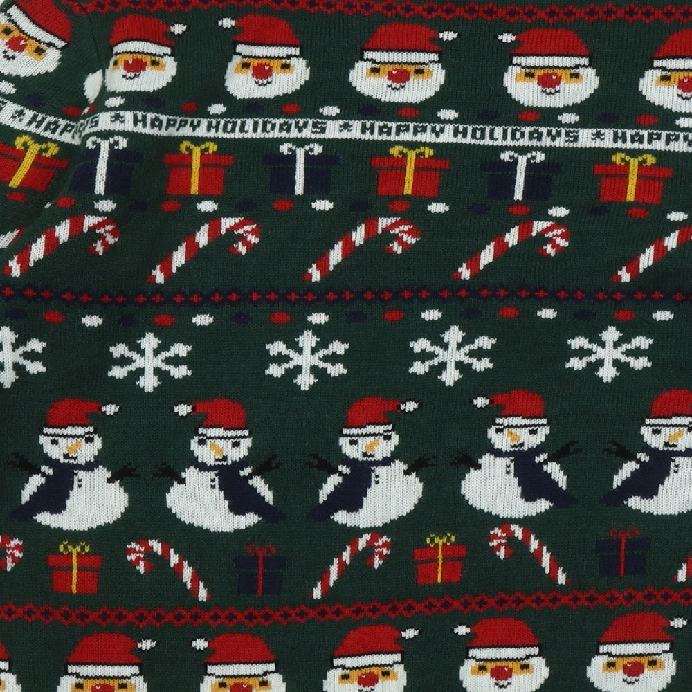 Mens Green Round Neck Geometric Pullover Jumper Size L - Christmas Jumper