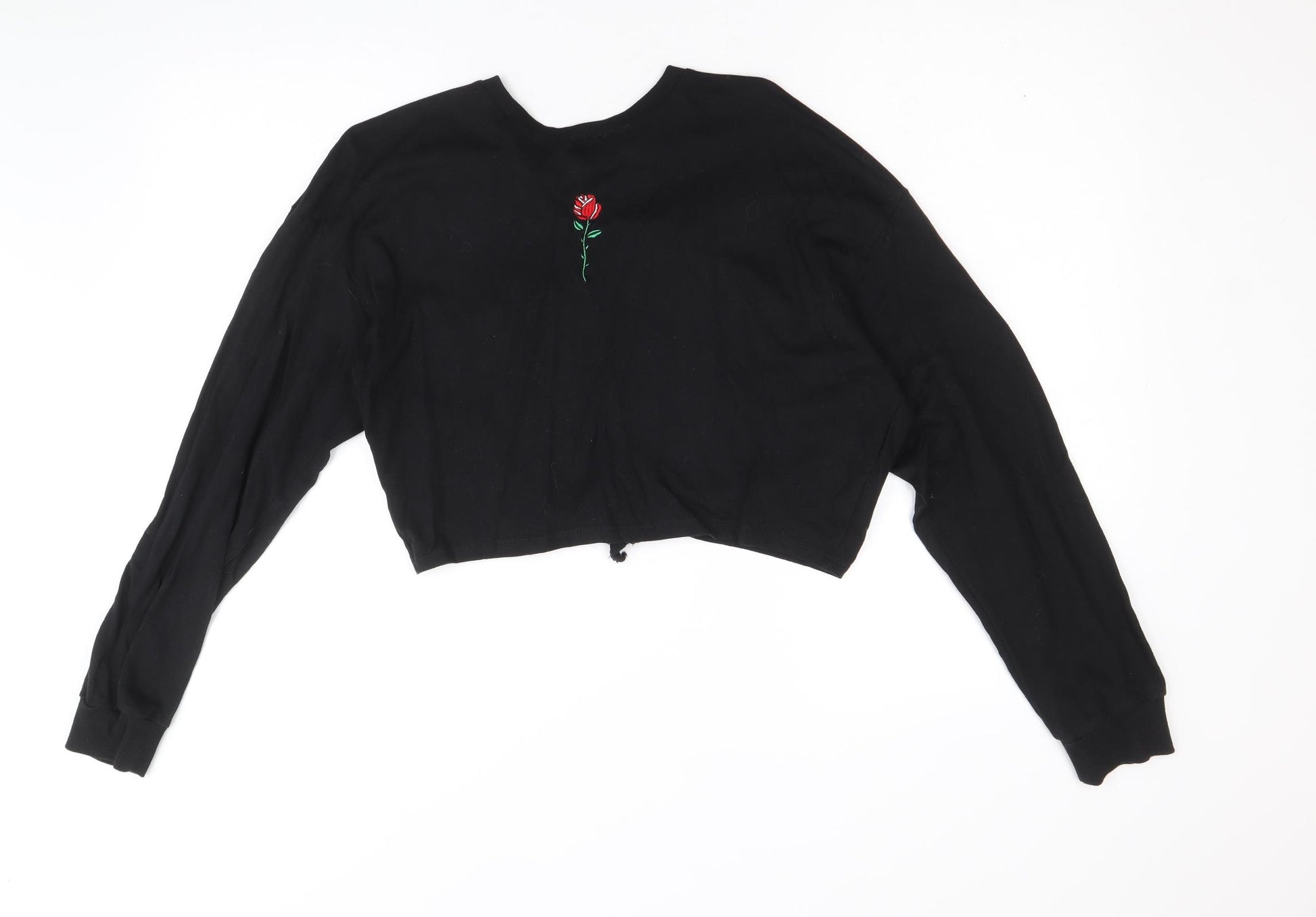 Womens Black 100% Cotton Pullover Sweatshirt Size S Pullover - Cropped, Open Back Detail