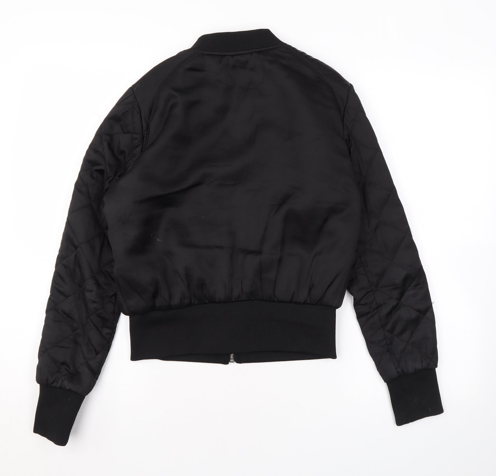Womens Black Bomber Jacket Jacket Size 8 Zip