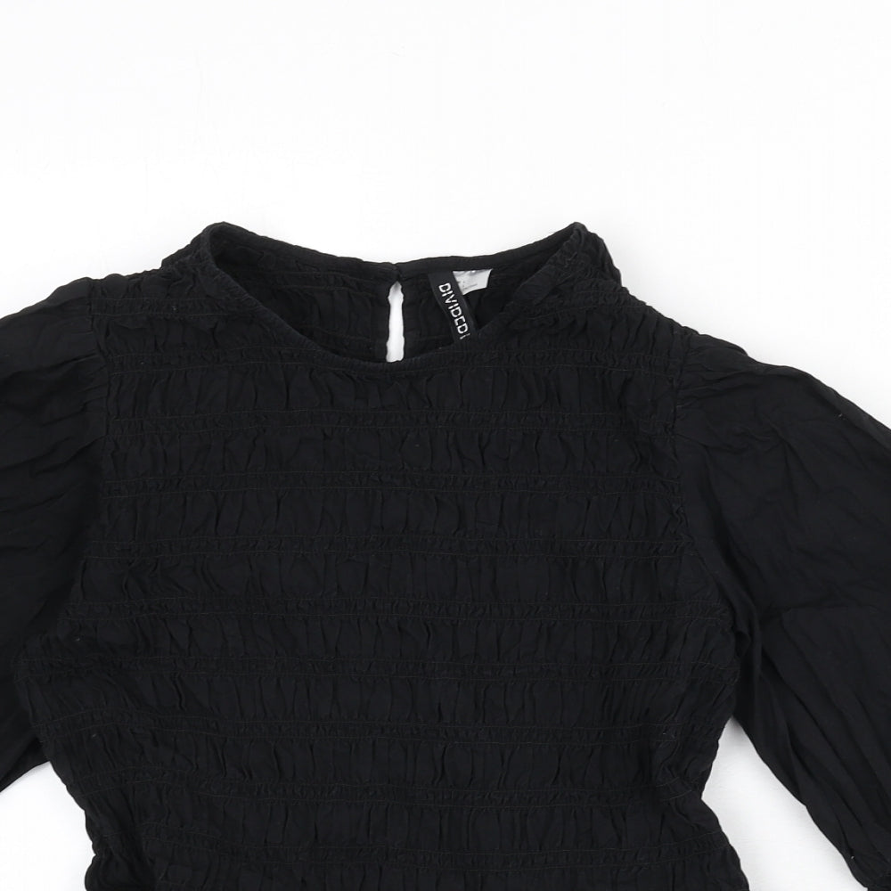 Womens Black Cotton Basic Blouse Size L Round Neck - Shirred