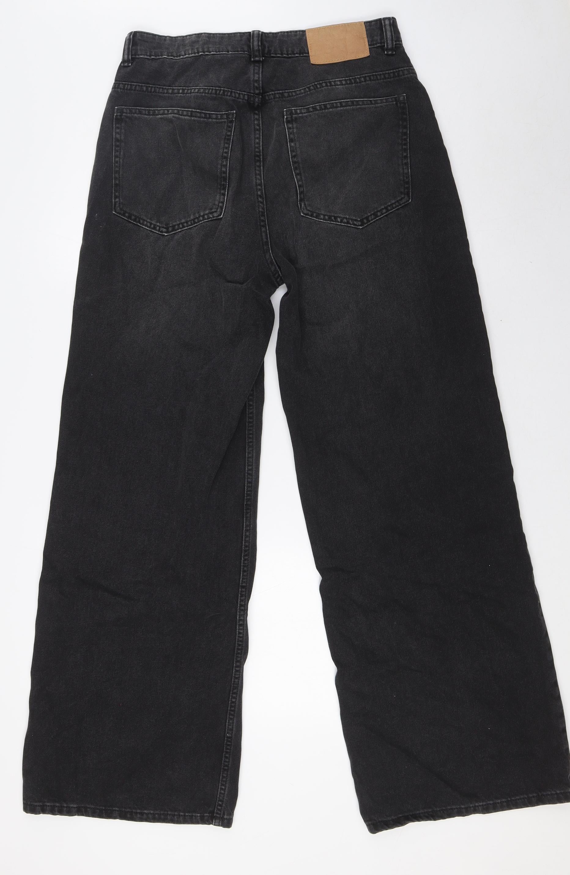 Womens Black Cotton Wide-Leg Jeans Size 12 L31 in Regular Button