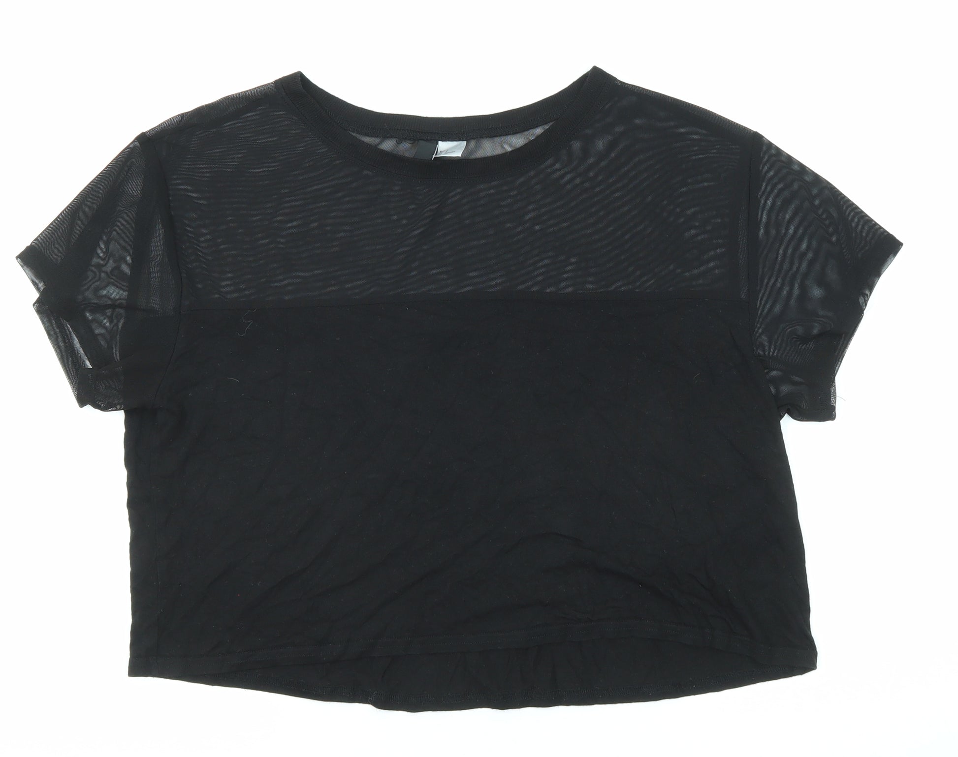 Womens Black Polyester Basic T-Shirt Size S Round Neck