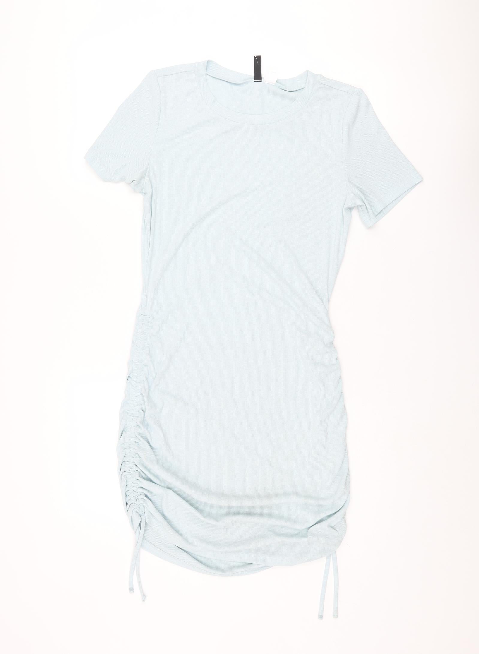 Womens Blue Polyester Bodycon Size M Round Neck Pullover - Drawstring