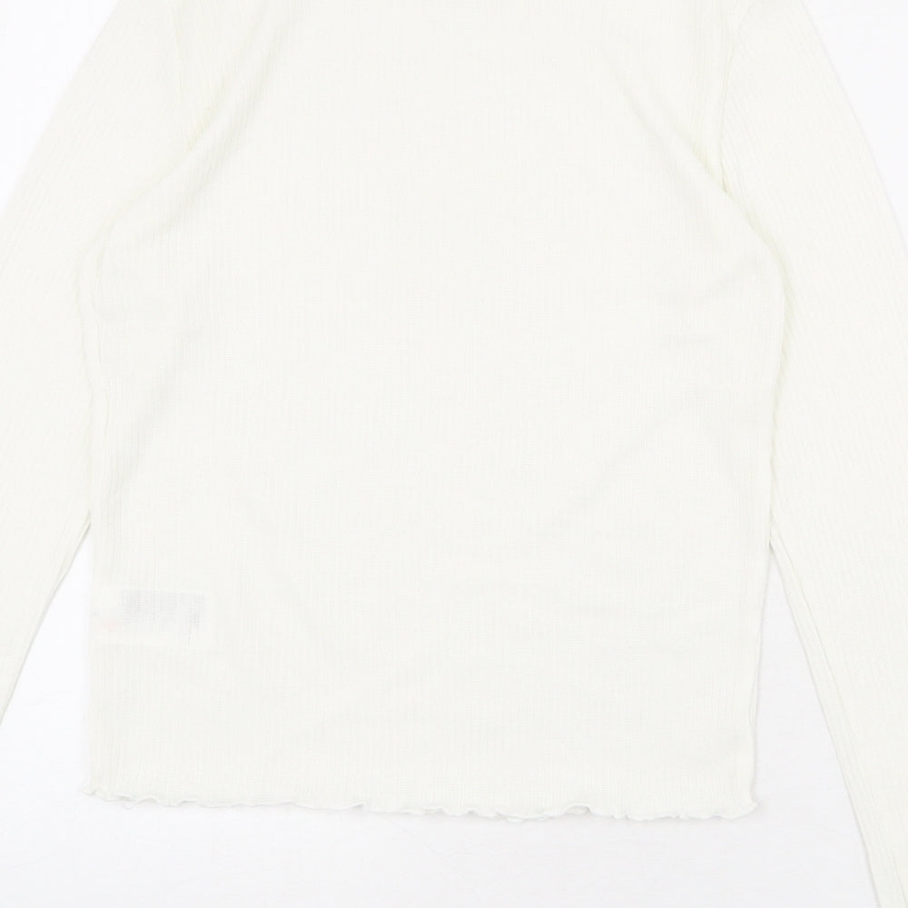 Womens Ivory Polyester Basic Blouse Size M Mock Neck