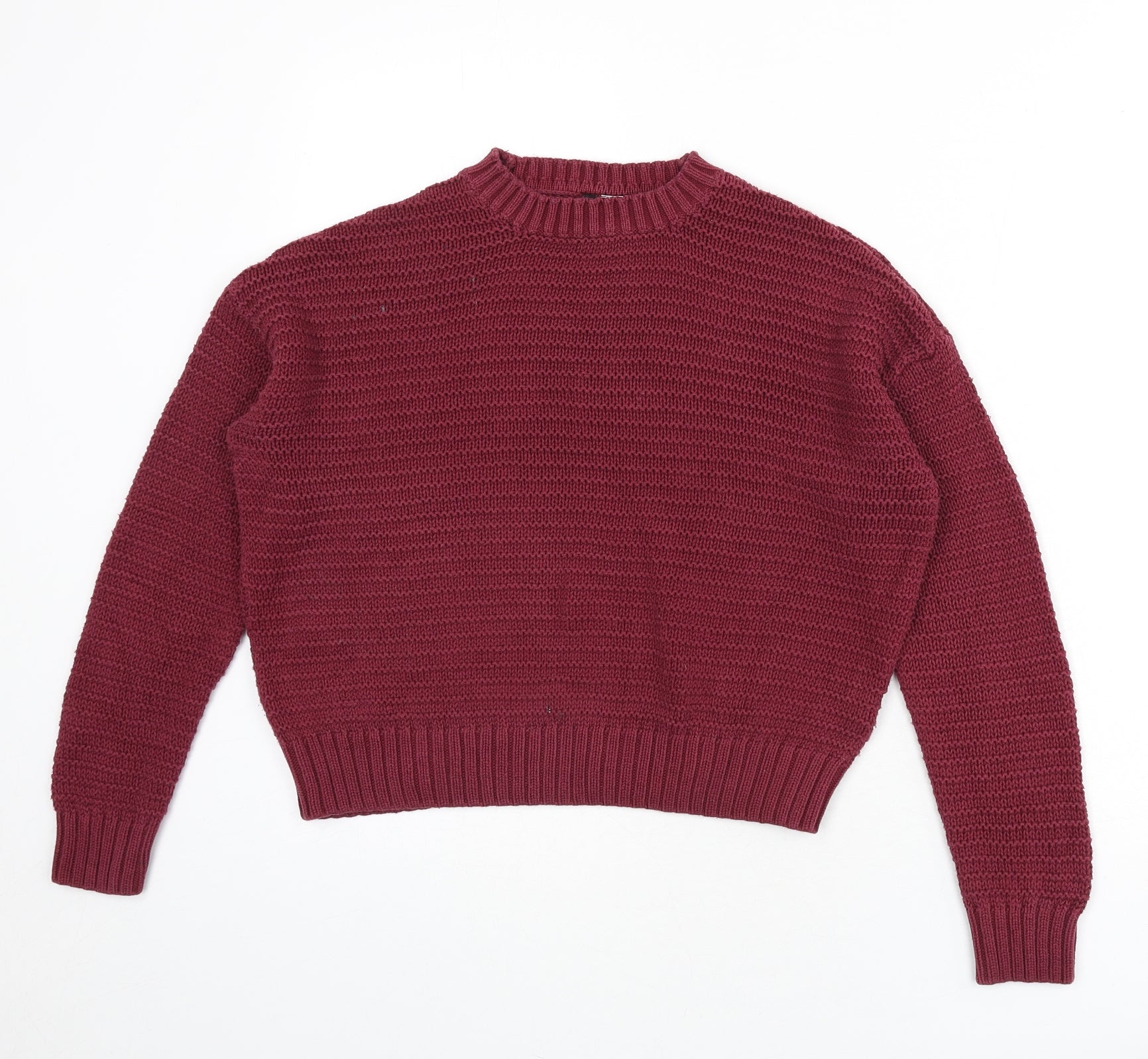 Womens Red Round Neck Cotton Pullover Jumper Size XS