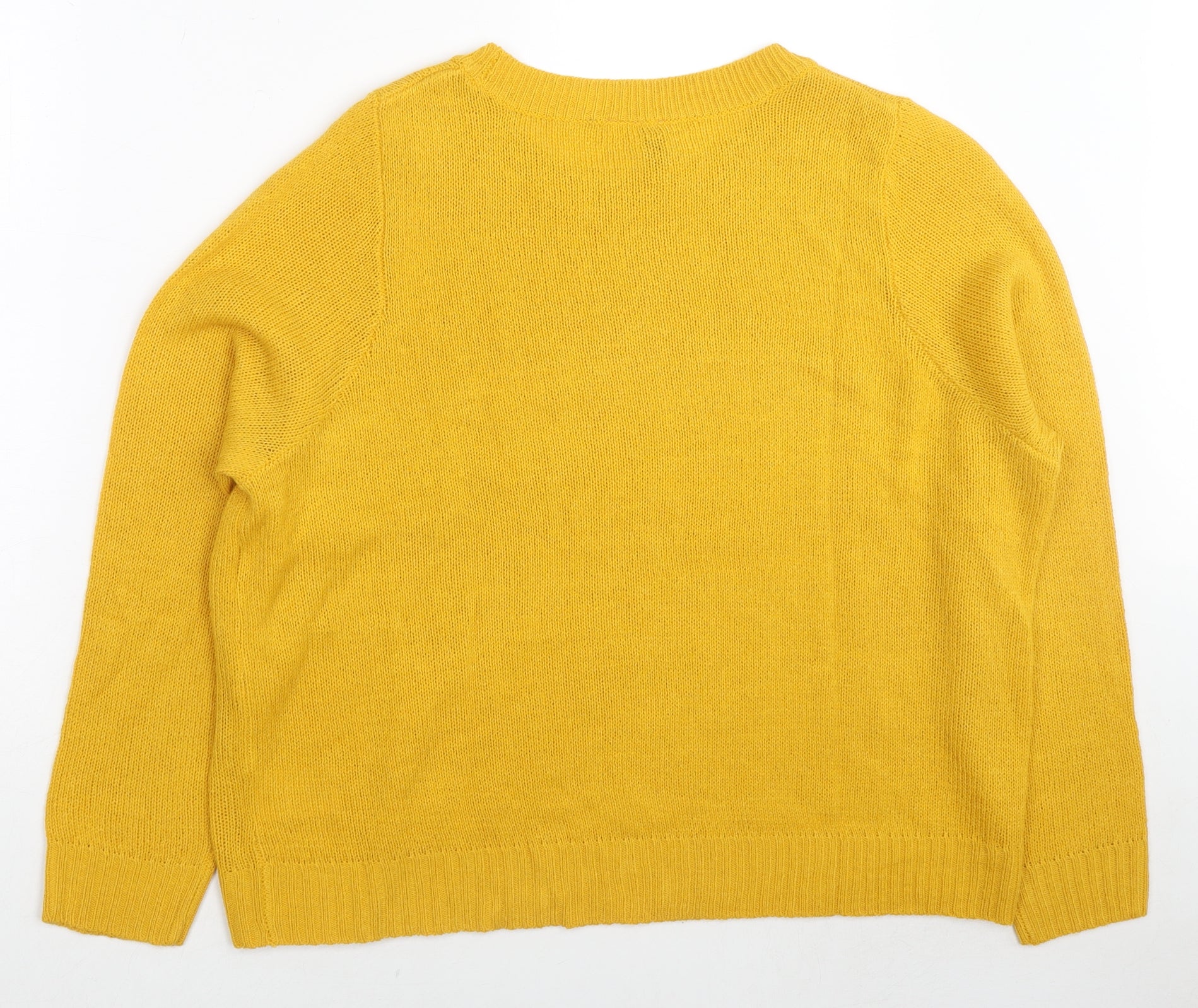 Womens Yellow Round Neck Acrylic Pullover Jumper Size XL