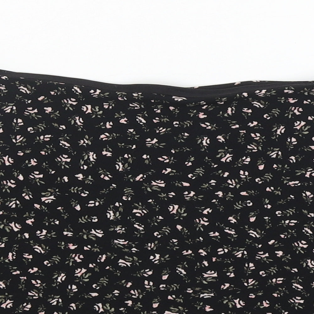Womens Black Floral Polyester Mini Skirt Size 10 Zip