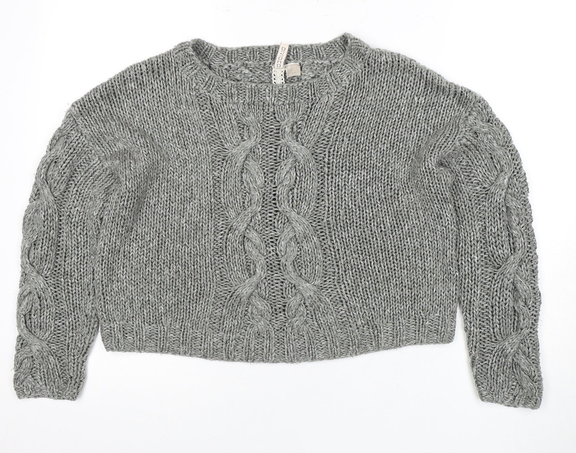 Upgrade your wardrobe with this stylish Divided women's grey pullover jumper. Crafted in a classic crew neck design, this regular fit jumper features a chic cable-knit style in a cosy long sleeve cut. The knit fabric made from 93% acrylic and 7% polyamide ensures warmth and comfort, making it perfect for autumn and winter wear. Ideal for adding a touch of sophistication to any casual outing, this jumper blends seamlessly with your existing wardrobe. Machine washable and easy to maintain, this jumper provides both style and practicality. In excellent condition without tags, it shows minimal signs of wear, offering you a like-new experience. Elevate your fashion game this season with this must-have piece that promises to keep you warm and trendy.