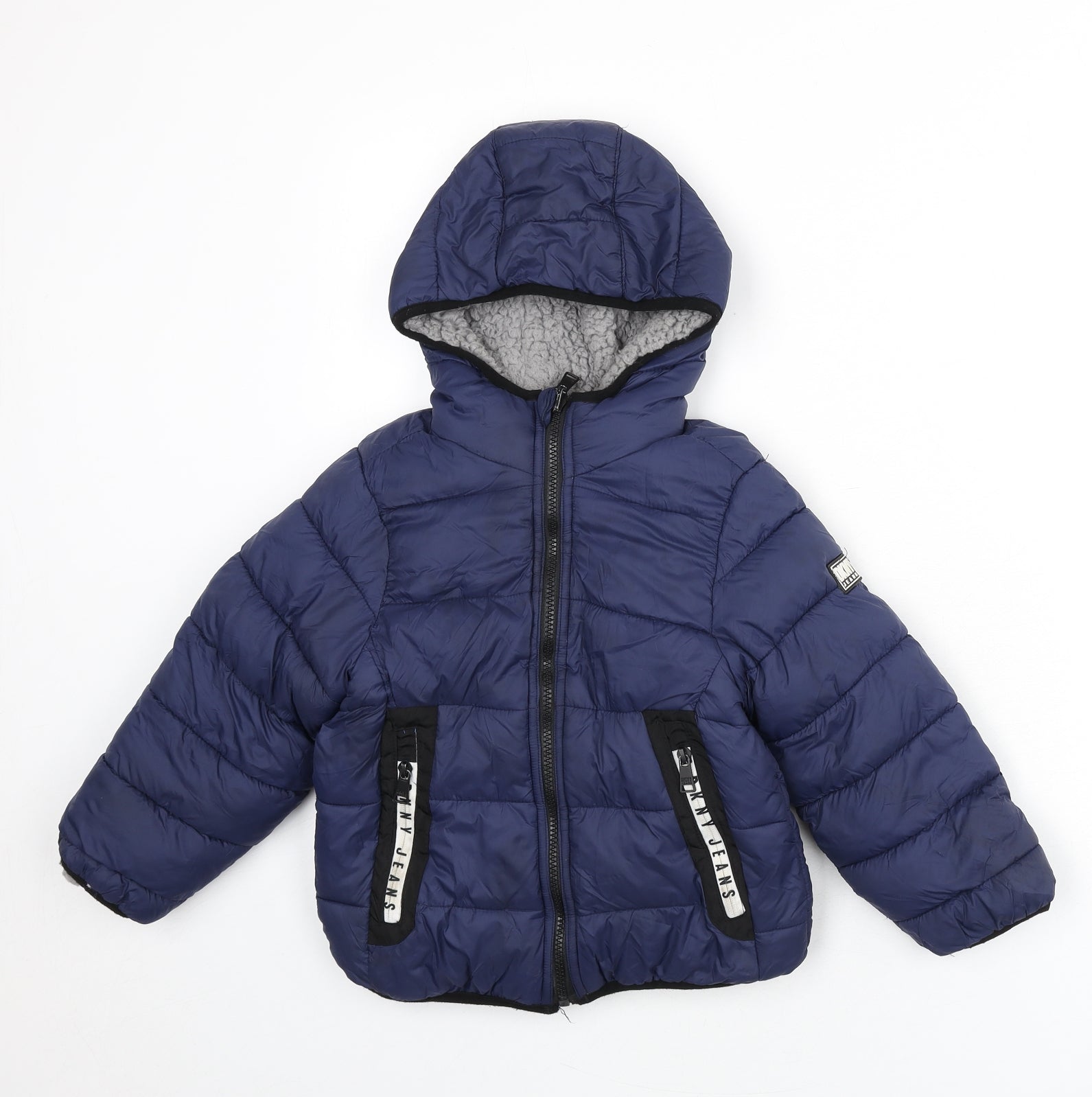 Boys Blue Puffer Jacket Coat Size 5-6 Years Zip