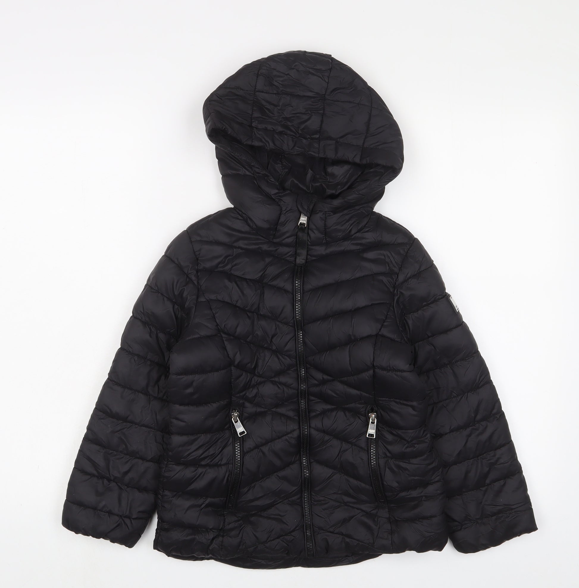 Girls Black Basic Coat Coat Size 6 Years Zip - Logo