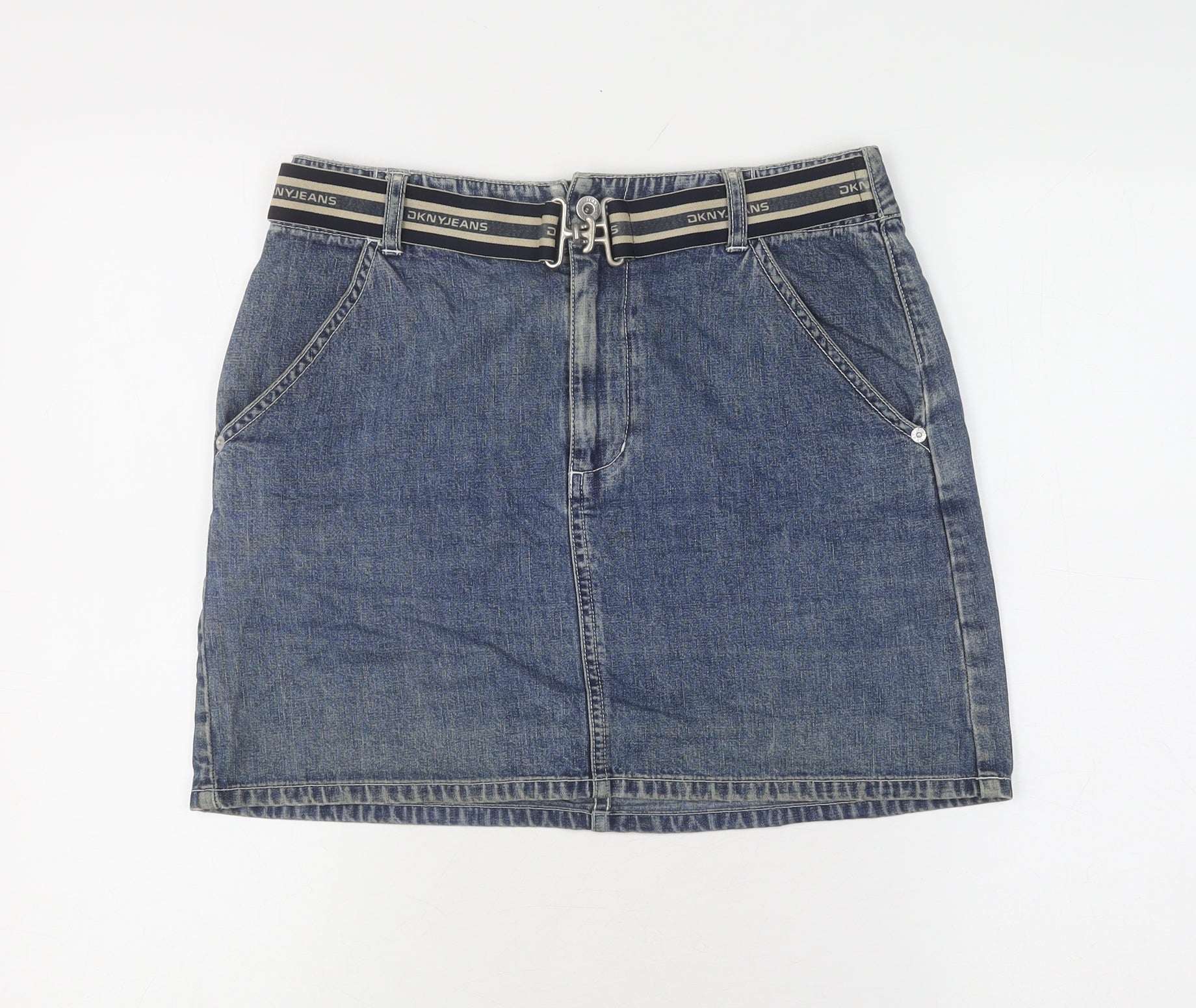Step out in casual chic with this DKNY Jeans denim skirt, perfect for elevating your everyday wardrobe. Crafted from 100% cotton, the skirt offers a comfortable and breathable fit, making it ideal for all seasons. Its classic blue hue and straightforward straight & pencil design provide a timeless look that can be dressed up or down, whether you're heading to a casual brunch or a laid-back day at the park. Styled with functional pockets and a secure button and zip closure, this skirt doesn't just promise style but practicality too. Adding to the trendy appeal is the belted waist that echoes contemporary fashion tastes perfectly. Its mid-rise cut flatters any figure while promising a comfortable, snug fit around the waistline. While in excellent condition, the skirt comes without its original tags, demonstrating minimal use. It's ideal for anyone seeking a blend of style, comfort, and versatility. Pair with a casual tee and sneakers for an effortless off-duty ensemble. Make this staple piece a permanent fixture in your wardrobe today!