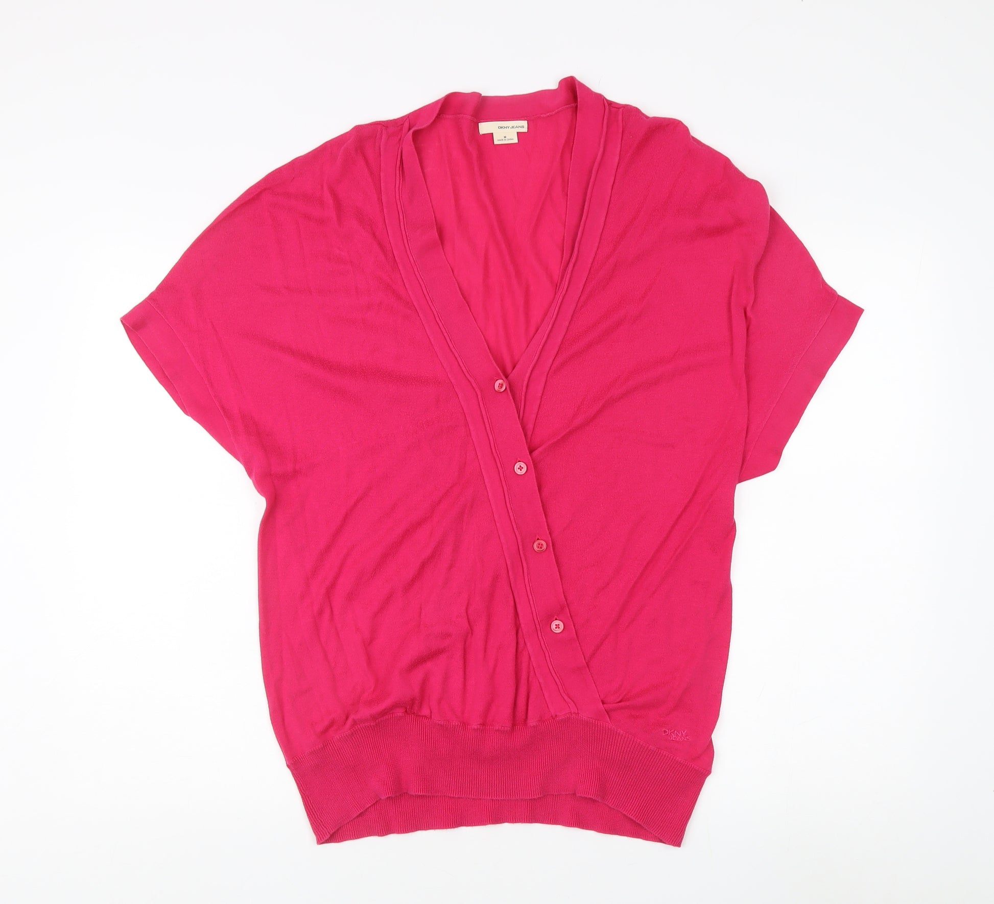 Elevate your casual wardrobe with this stylish pink button-up top from DKNY Jeans. Perfect for women looking to add a splash of colour to their ensemble, this piece offers a vibrant pink hue that is both striking and fun. Crafted from 100% cotton, the top ensures breathability and comfort, making it ideal for warmer seasons like spring and summer. The knit fabric adds texture and dimension, while the relaxed fit provides all-day comfort. This medium-sized top features a V-neckline and button-up closure, giving you a classic yet modern look that's perfect for casual outings. The solid pattern and basic style make it versatile and easy to pair with jeans or shorts for a laid-back daytime look. Accentuated with buttons, it provides subtle detailing that enhances its overall charm. Designed for women who appreciate everyday elegance, this top is perfect for coffee dates, brunches, or casual get-togethers. With its excellent condition, you can be assured of its quality and longevity in your wardrobe. A must-have for anyone who values comfort and style in their everyday wear.