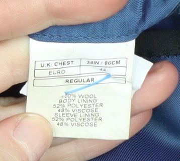 Elevate your formal wardrobe with this chic DKNY men's blazer, designed for the modern gentleman who values style and comfort. Crafted from 100% wool, this blue blazer is perfect for the autumn and winter seasons. The regular fit ensures a comfortable wear, while the classic single-breasted, two-button front adds a touch of sophisticated elegance. The jacket features a notch lapel style and a double-vented back for enhanced movement and style, making it ideal for those formal occasions where you need to make an impression.Designed with practicality in mind, this blazer is lined with a blend of polyester and viscose for added comfort and durability. The four-button sleeve detail enhances its refined look, ensuring you exude confidence wherever your day takes you. Though in very good condition, there is a slight mark on the back, which does not take away from the overall appeal and functionality of the jacket.Perfect for weddings, business meetings, or any formal gathering, this versatile jacket pairs well with matching trousers or can be dressed down with smart jeans for a more casual yet polished look. Embrace the feel of luxury with this DKNY blazer—a true style staple for every discerning man's wardrobe.