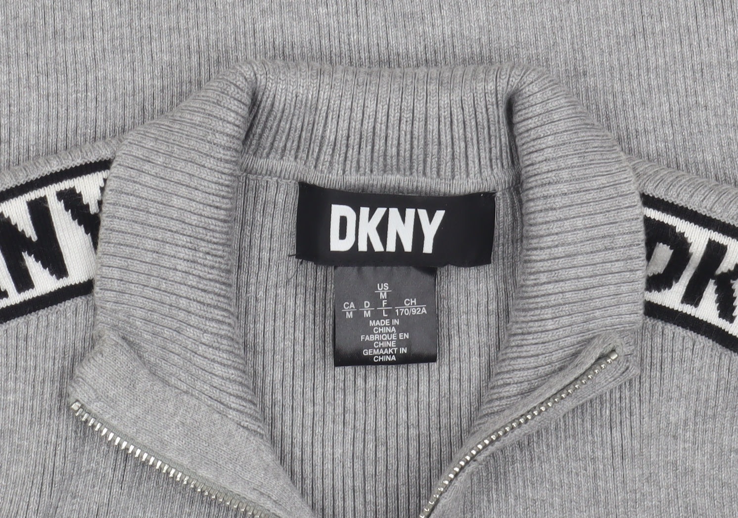 Elevate your casual wardrobe with this stylish DKNY women's jumper in a versatile grey hue. Crafted from a cosy cotton and acrylic blend, this knit full-zip jumper offers both comfort and style. Featuring a high neck and raglan long sleeves with iconic DKNY branding, it’s designed to make a fashion statement while keeping you warm. The slim fit adds a flattering silhouette, suitable for various occasions, whether a casual day out or a relaxed meet-up with friends. Ideal for autumn and winter, this jumper provides excellent layering possibilities. In excellent condition, this gently used piece shows no signs of wear or defects, ensuring it will continue to be a key part of your seasonal attire. Add this to your collection for both functionality and a touch of designer elegance.