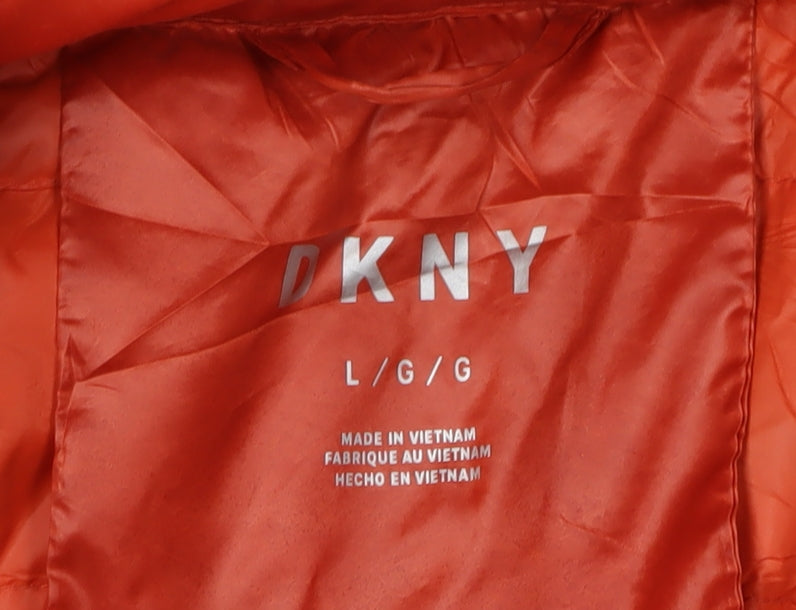 Embrace style and warmth with this DKNY women's puffer jacket. Crafted from a resilient blend of polyester and nylon, this orange jacket offers both comfort and durability, perfect for the cooler autumn and winter months. Designed in a classic puffer style with a hood and full zip closure, it's an ideal piece to complement your casual wardrobe while ensuring you stay snug. The jacket features practical zipped pockets for your essentials and a comfortable, regular fit that suits a range of body types. Finished with a sleek orange hue, it adds a pop of colour to any outfit. Whether heading to work or out for a weekend stroll, this versatile jacket is a fashionable and practical choice. The down insulation ensures exceptional warmth without the bulk, making it a must-have addition to your outerwear collection.