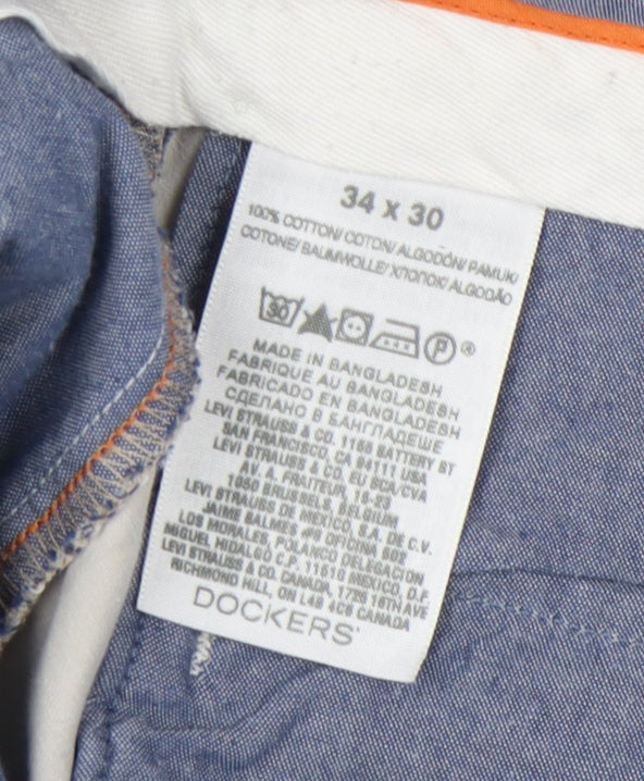 Step out in style with these versatile Dockers Men's Chino Trousers. Crafted in a classic beige tone, these trousers are perfect for any casual occasion. Designed with a comfortable 34-inch waist and 30-inch inside leg, they offer a flattering fit for everyday wear. Featuring a button closure and flat front design, these chinos are both stylish and functional. Made from 100% cotton, they provide a breathable and comfortable wear, ideal for the spring season. The straight leg style and subtle design make them easy to pair with a variety of tops and shoes, while the practical slash pockets add convenience. Although in very good condition, please note slight marks at the hem that have been factored into the excellent pricing. Ideal for men who value both style and comfort, these Dockers chinos are an essential wardrobe addition.