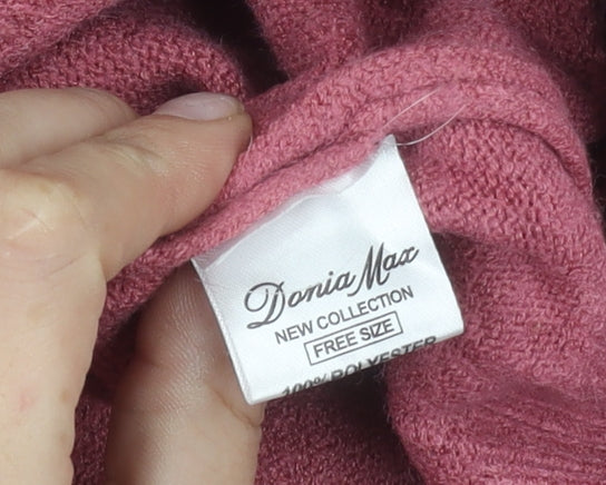 Add a soft and versatile piece to your wardrobe with this Donia Max women’s pink pullover jumper. Designed in a flattering one-size fit, this lightweight knit is perfect for layering in both autumn and winter. The relaxed crew neckline ensures comfort, while the long sleeves make it an ideal choice for cooler weather. The jumper is crafted from 100% polyester, meaning it is soft to the touch and simple to care for, ensuring practicality as well as style.What sets this piece apart are the chic fur trim accents along the sleeves and bodice, lending a playful yet elegant touch. The design also features an open-knit detail combined with subtle argyle and diamond-inspired textures to add depth and charm to its overall appearance. Effortlessly balancing casual wearability with stylish details, this jumper is suitable for a variety of occasions, ranging from relaxed daytime outings to cosy evening gatherings. Pair it with jeans or leggings for a casual look, or elevate it with a skirt and accessories for a more polished outfit.Sized as 'One Size,' this pullover is intended to fit a broad range of body shapes, offering comfort and flexibility without compromising on a flattering silhouette. It sits comfortably on the body while allowing room for movement, making it a reliable choice in any season. The feminine pink shade adds vibrancy and warmth, complementing a wide array of skin tones and styles.This pre-loved jumper remains in very good condition, with only light wear and some minor creasing from storage. It has plenty of life left and would make a stylish, practical addition to your collection. Affordable, versatile, and comfortable, this Donia Max jumper is a wardrobe essential that blends everyday comfort with seasonal charm. Don’t miss the chance to add this fur-accented knit to your fashion favourites.