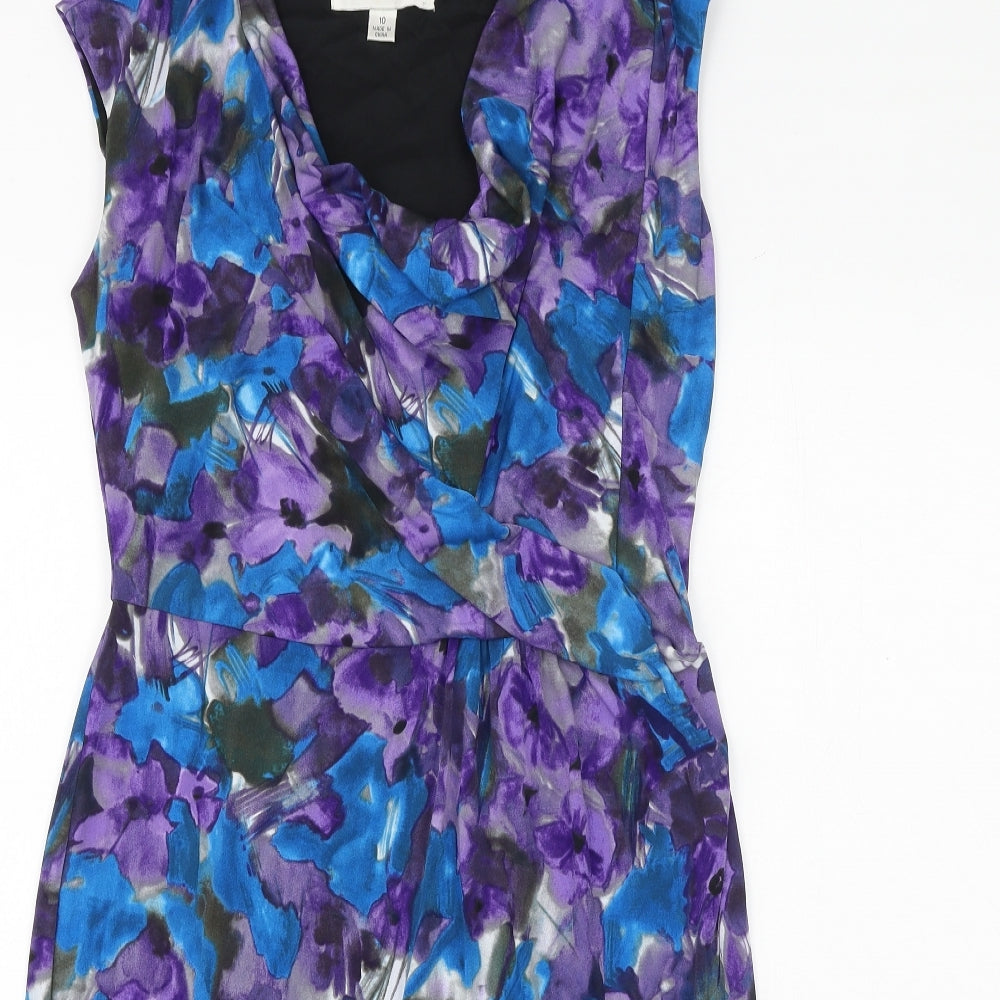 Marks and Spencer Womens Multicoloured Floral Lyocell Fit & Flare Size 10 V-Neck Tie