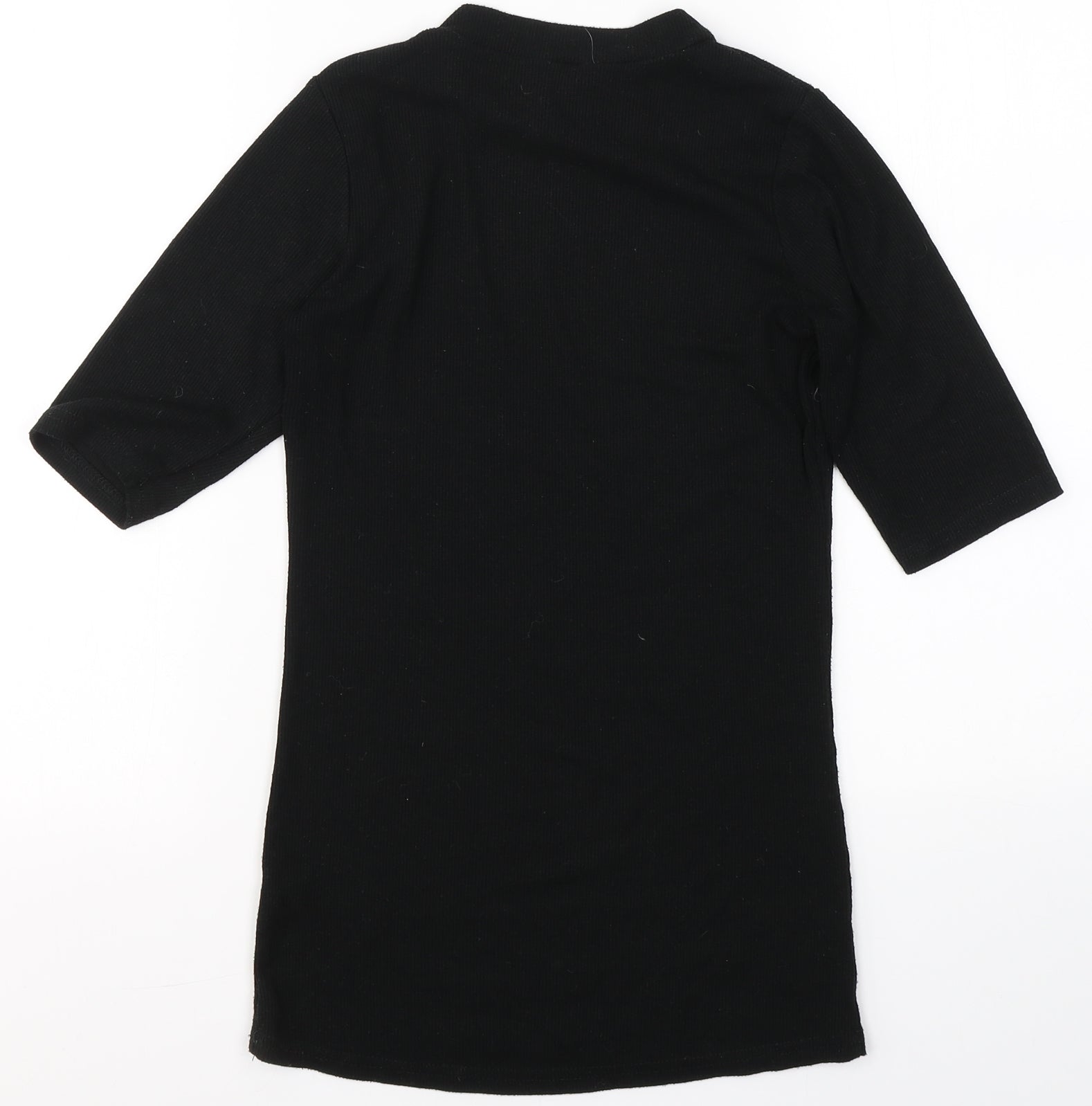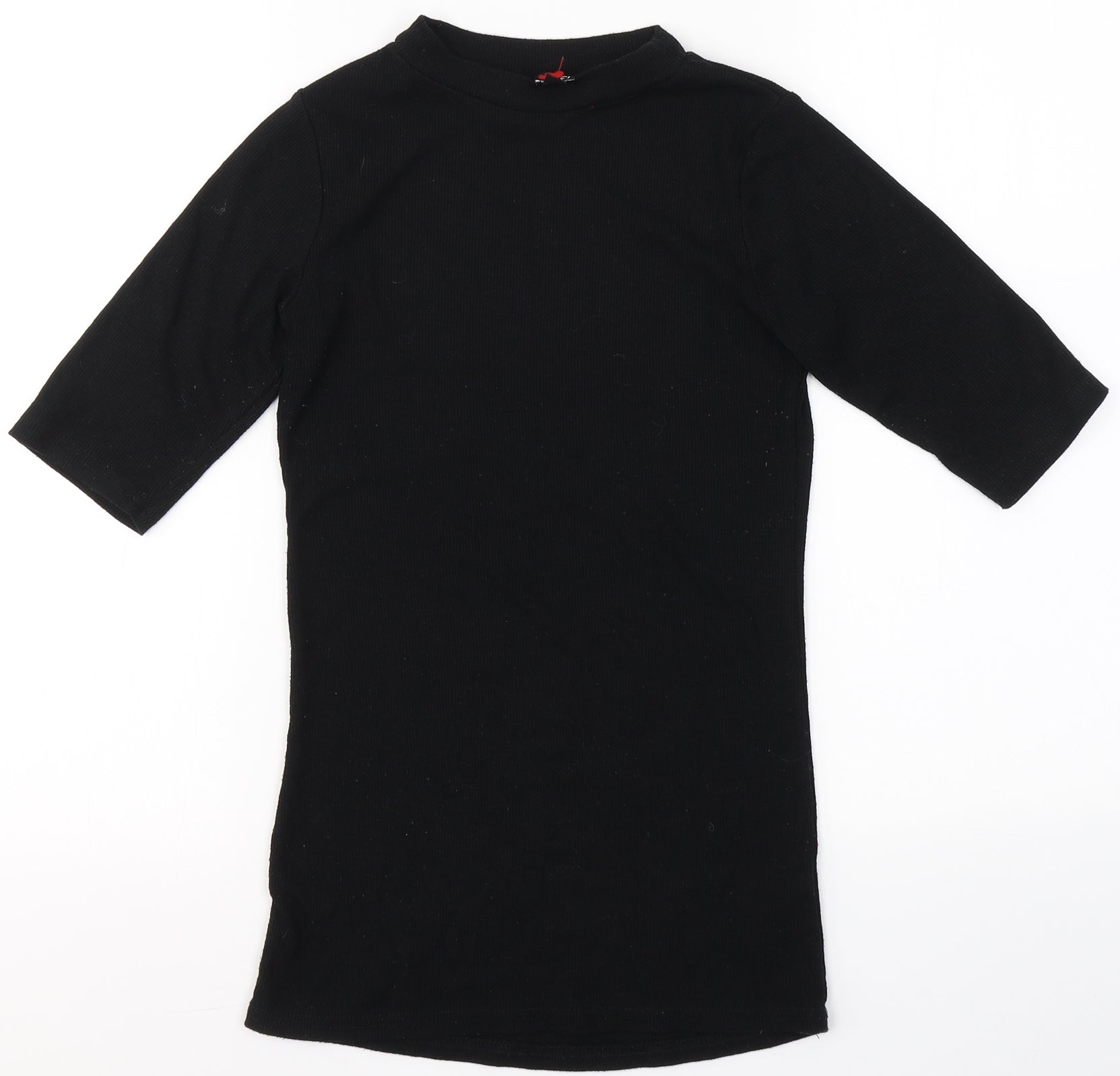 Womens Black Cotton Basic T-Shirt Size S Round Neck