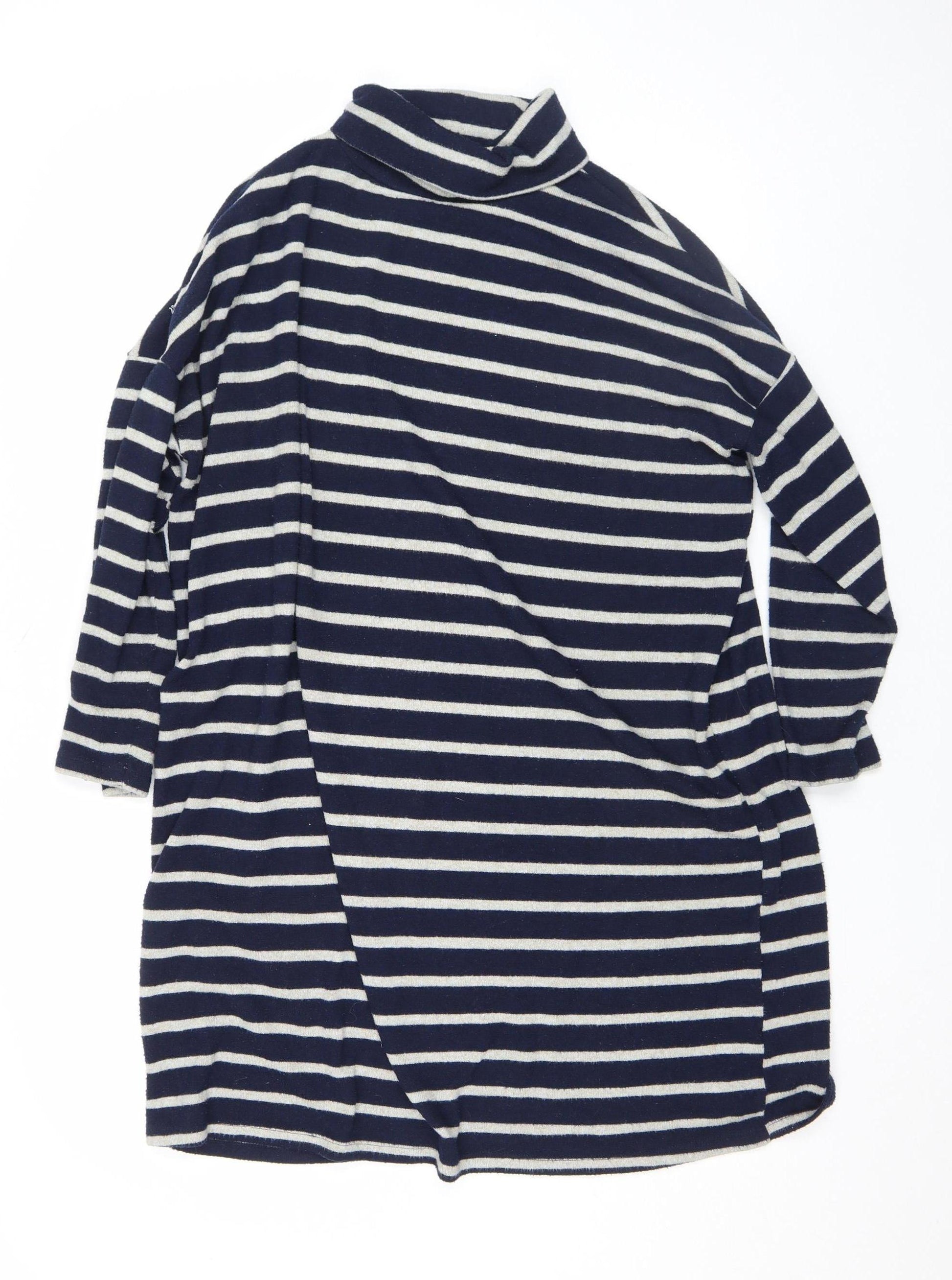 Women Blue Striped Roll Neck Long Sleeve Jumper Size 12