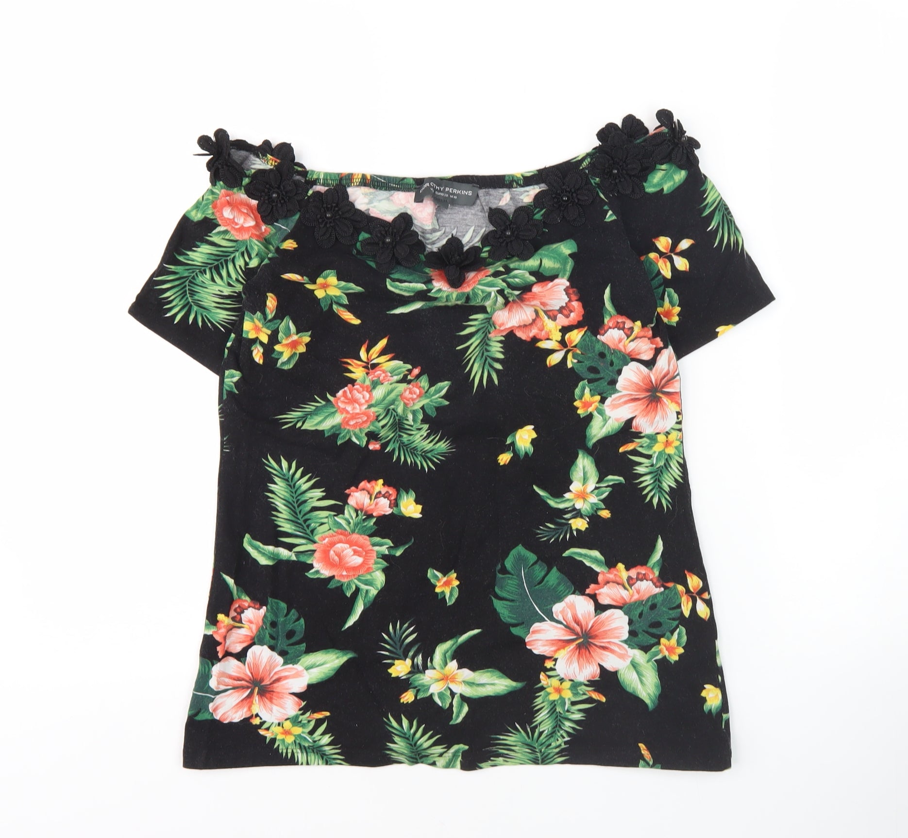 Refresh your summer wardrobe with this charming Dorothy Perkins off-the-shoulder blouse. Crafted in a breathable cotton-elastane blend, this delightful piece offers comfort and style, perfect for warm days. Featuring an elegant floral pattern set against a classic black backdrop, this blouse captures the essence of tropical bliss. The short sleeves and off-the-shoulder neckline, adorned with embroidered floral accents, add a unique touch. Designed for a regular fit, this blouse is ideal for casual outings or a relaxed day at the beach. Pair it with shorts or jeans for an effortlessly chic look. Machine washable for easy care, this blouse is in excellent condition with no visible flaws, making it a beloved choice for the fashion-forward woman.