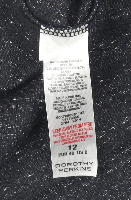 Elevate your wardrobe with this stylish Dorothy Perkins women's blue geometric tweed mini skirt in size 12. Crafted from a comfortable blend of polyester, viscose, and elastane, this quality piece offers both structure and ease of movement with its softly stretchy fabric. The tweed texture and rich blue tone highlight a charming geometric pattern that brings subtle character and a touch of classic sophistication to any outfit. Designed for versatile wear, this short, mid-rise skirt pairs perfectly with smart blouses or relaxed knitwear for numerous occasions. It’s an ideal choice for casual outings, weekend get-togethers, or even smart-casual office wear. Featuring convenient pocket details and a concealed zip fastening for a clean silhouette, the skirt balances practicality with refined style. The soft lining enhances comfort against the skin, while the quality tailoring ensures a flattering fit. The design embodies contemporary femininity while nodding towards timeless tailoring, making it an ideal piece for women who value both comfort and fashion-forward class. The sturdy fabric blend lends durability, perfect for autumn and winter wear, and the pattern adds visual texture without overwhelming your look. Pair it with ankle boots and a fitted jumper for a polished daytime style or tights and heels for a chic evening ensemble. Machine washable and easy to care for, this piece offers effortless maintenance. In excellent condition with minimal signs of previous wear, this skirt still delivers style and charm worthy of a new favourite. A beautiful addition to any woman’s wardrobe, this Dorothy Perkins mini skirt will keep your look sophisticated and seasonally on point — a staple item for elegant everyday dressing.