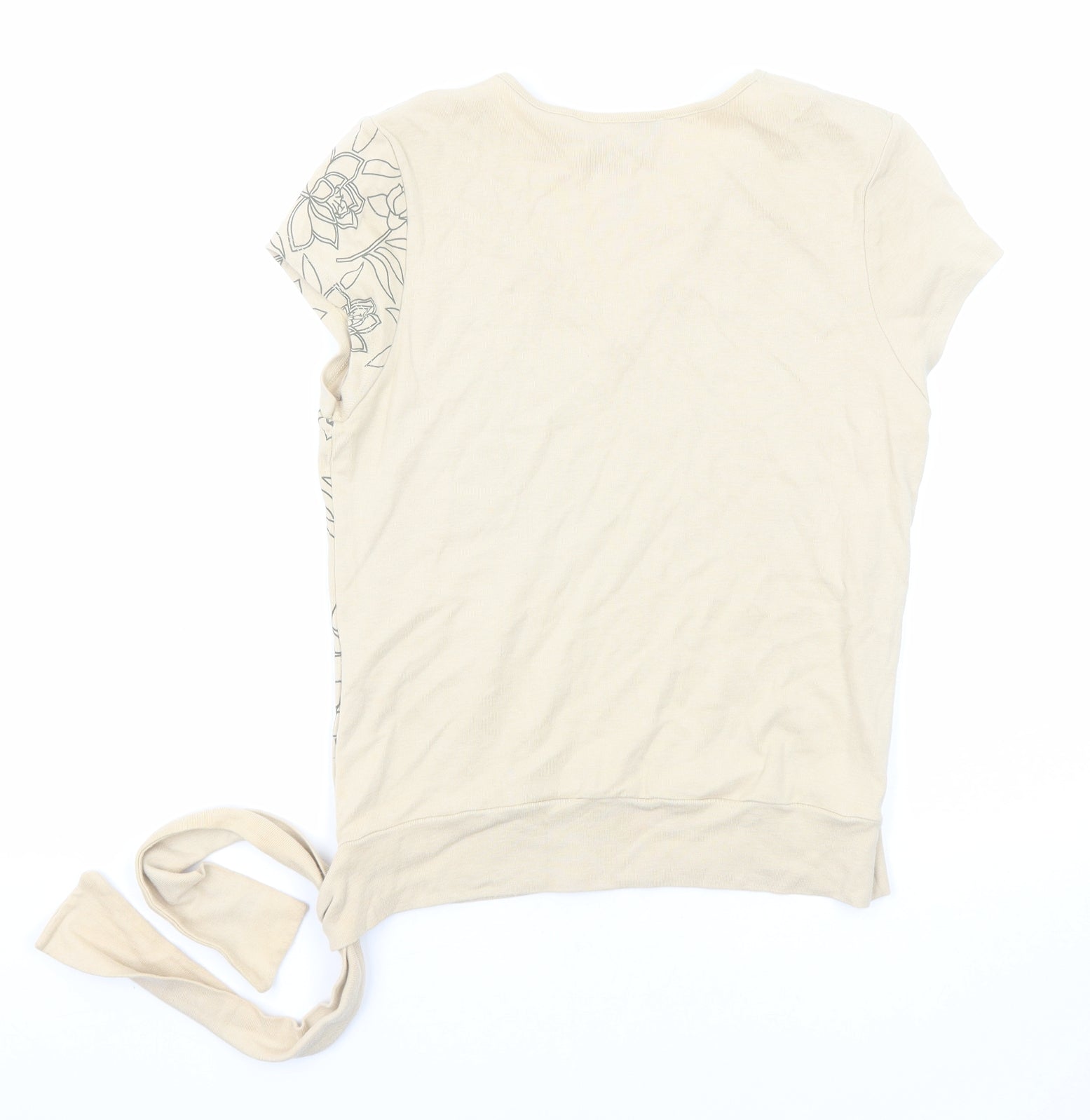 Womens Beige Cotton Basic Blouse Size 16 V-Neck
