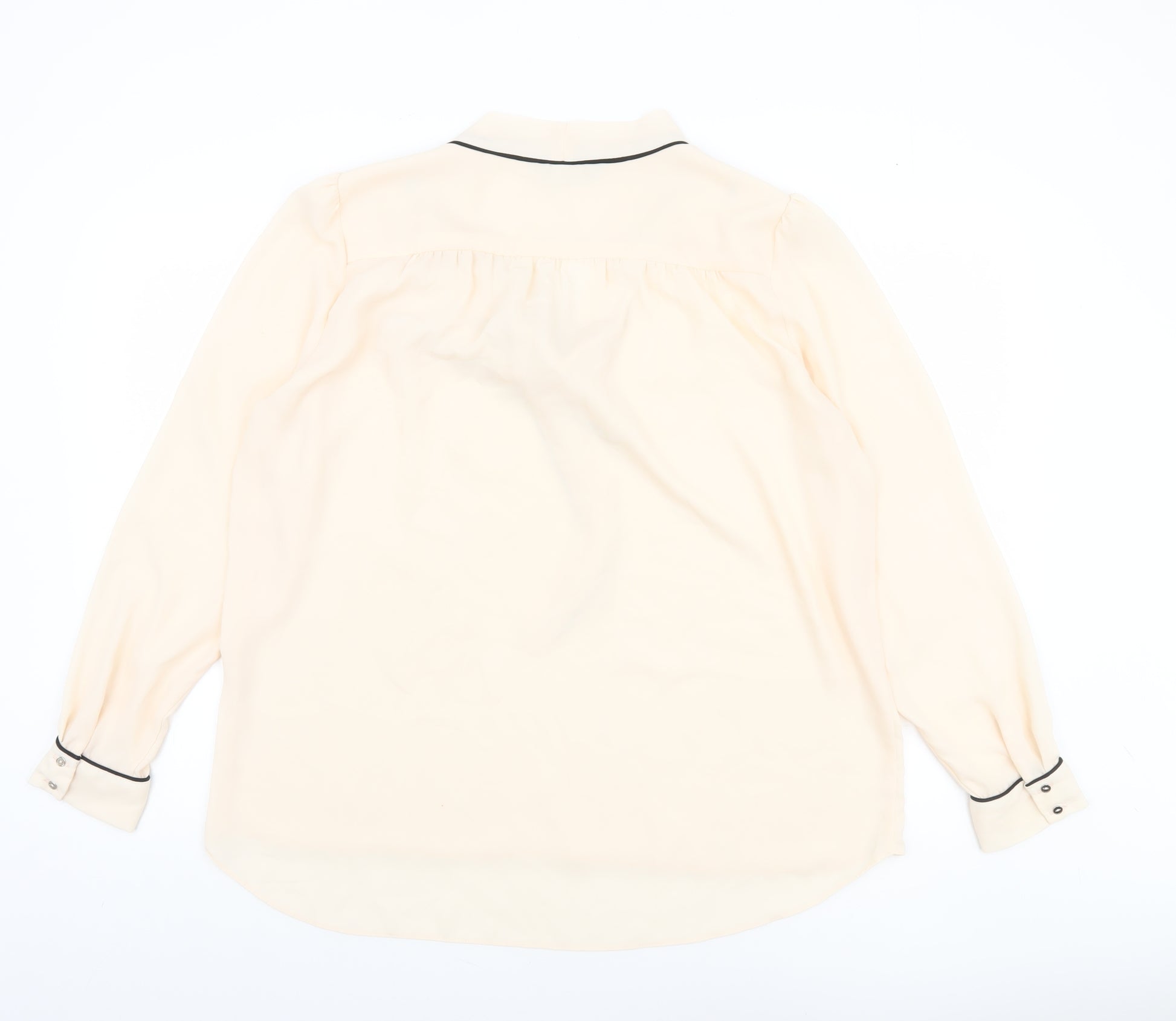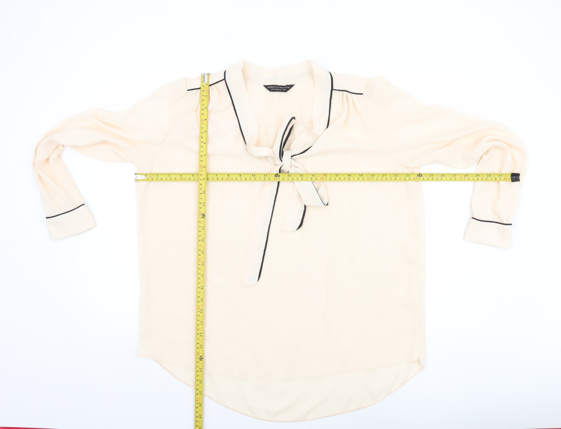 Women's Beige Long Sleeve Tie Neck Tunic Blouse UK 18