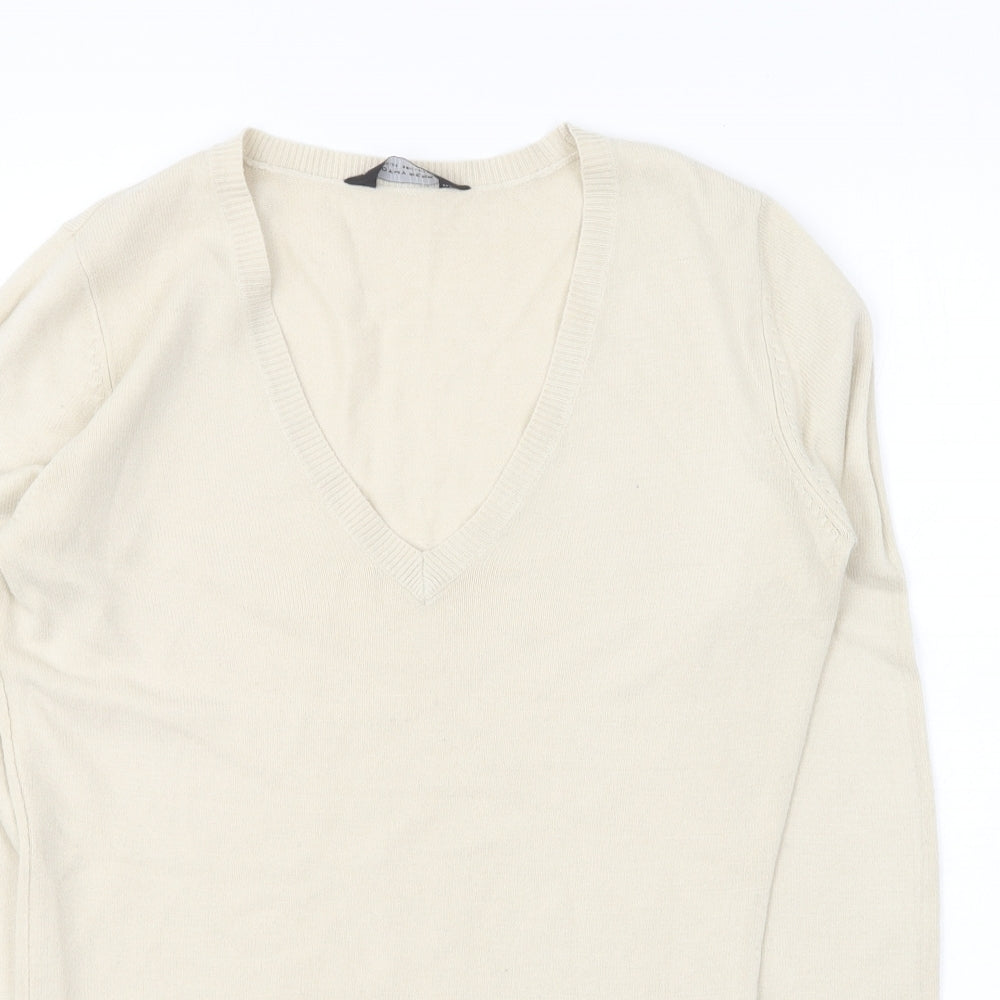 Womens Beige V-Neck Acrylic Pullover Jumper Size 10