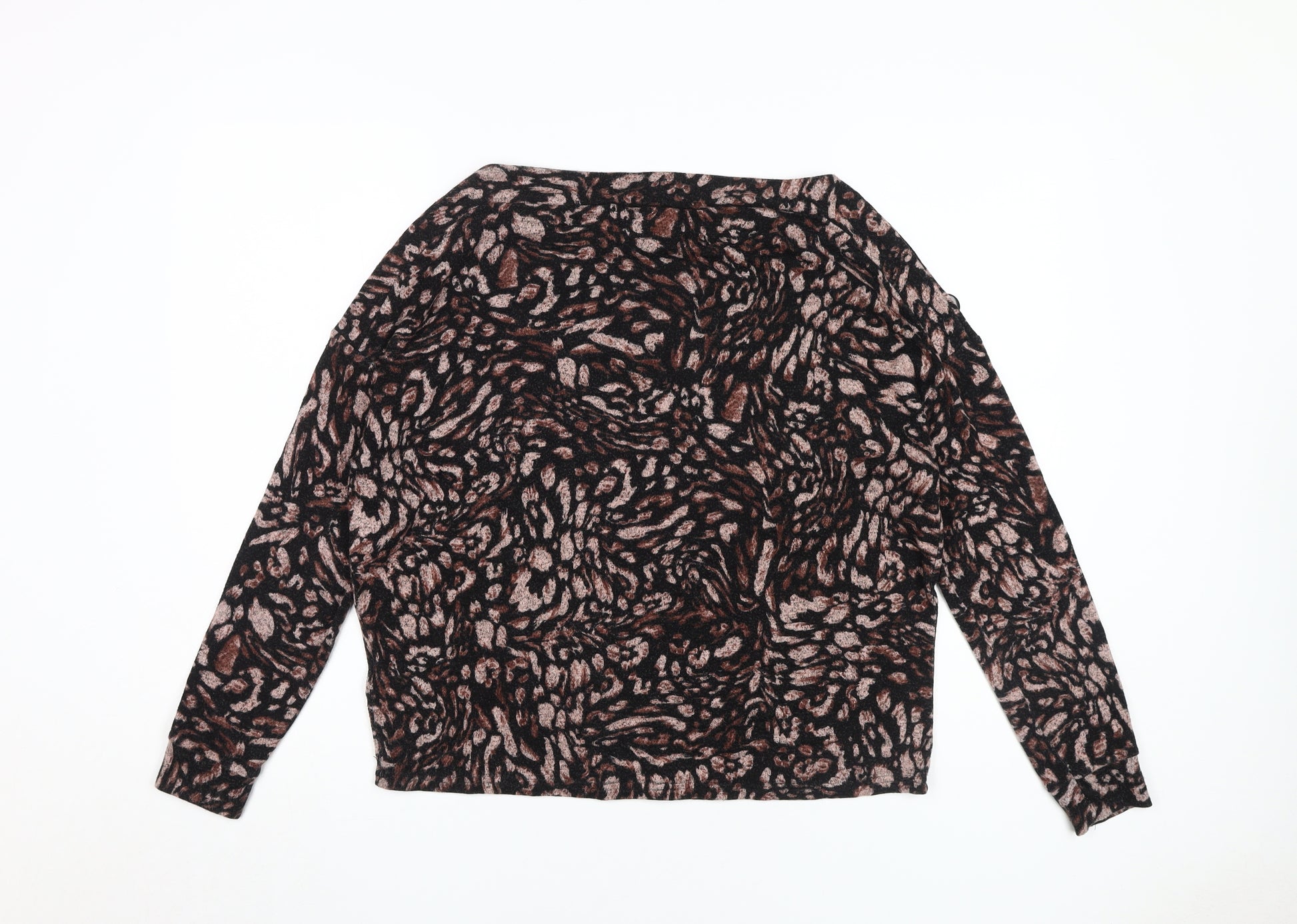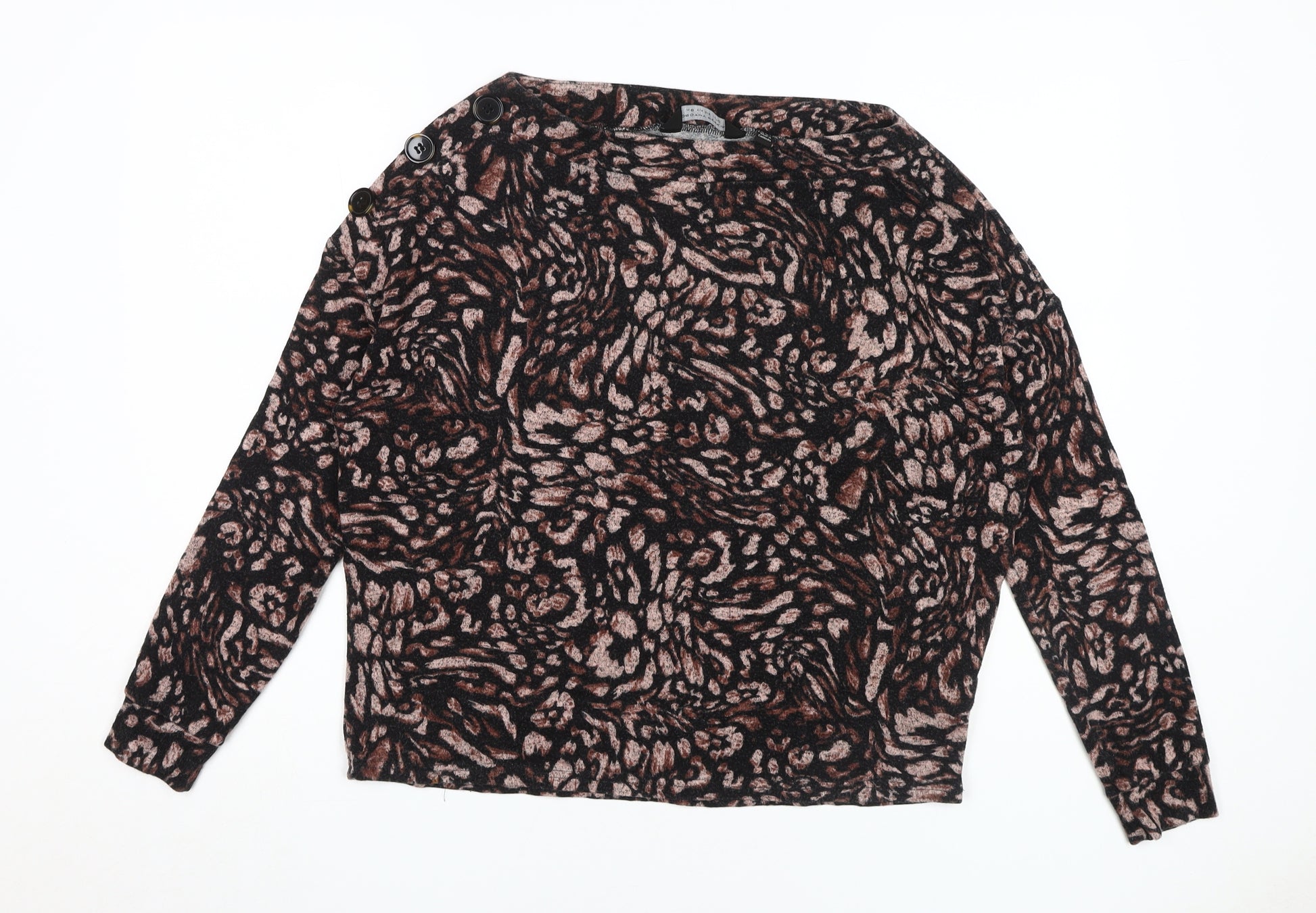Elevate your wardrobe with this stylish Dorothy Perkins women's top, perfect for adding a touch of flair to your collection. Designed in a striking black animal print, this top features a comfortable long sleeve and a distinctive button accent on the shoulder, adding a chic detail to any outfit. Crafted from a blend of cotton, polyester, and viscose, this knit top ensures both comfort and durability, making it ideal for everyday wear or a night out. The lightweight composition makes it a versatile choice for various occasions and seasons. In excellent condition with no visible wear or damage, this top offers an effortless blend of style and quality. Whether paired with jeans for a casual look or dressed up with accessories for a more formal appearance, this Dorothy Perkins piece is a must-have addition to any fashion-forward wardrobe. Don't miss out on the chance to own this elegant and affordable piece.